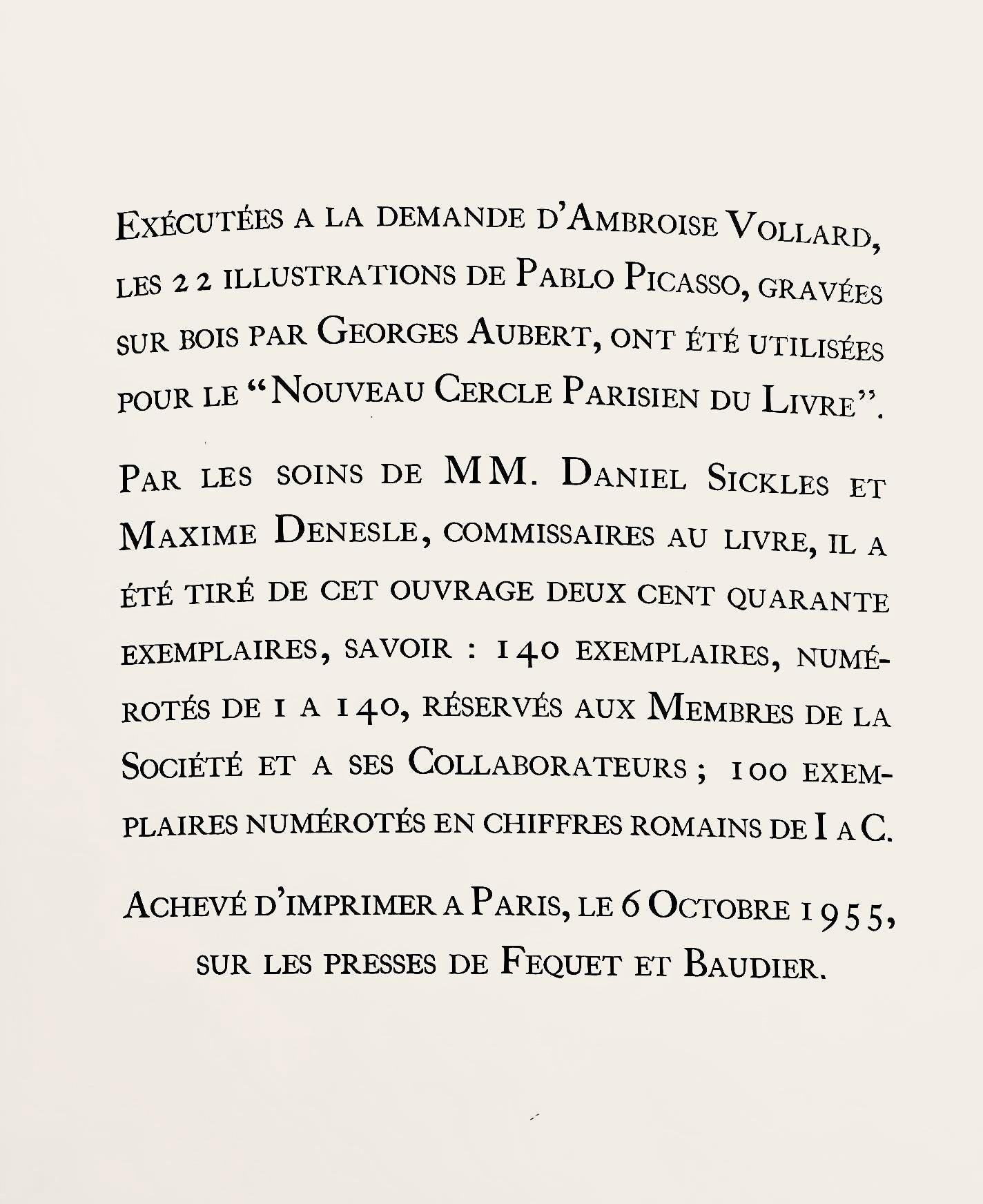 Woodcut on vlin Montval laid paper. Paper Size: 17.3125 x 13.8125 inches. Excellent condition. Inscription: Unsigned and unnumbered, as issued. Notes: From the album, Hlne chez Archive de Illustrations de Pablo Picasso, 1955. Published by Nouveau Cercle Parisien du Livre, Paris; rendered by Georges Aubert, Paris; printed by Fequet et Baudier, Paris, October 6, 1955. Excerpted from the album (translated from French), Executed at the request of Ambroise Vollard, the 22 illustrations by Pablo Picasso, engraved on wood by Georges Aubert, were used for the "Nouveau Cercle Parisien du Livre" by MM. Daniel Sickles and Maxime Denesle, book commissioners. It was drawn from this album CCXL examples, namely: CXL examples, numbered from I to CXL, reserved for members of the Socit et a ses Collaborateurs; C examples, numbered in roman numerals from I to C. Completed printing in Paris, on October 6, 1955, on the presses of Fequet et Baudier.