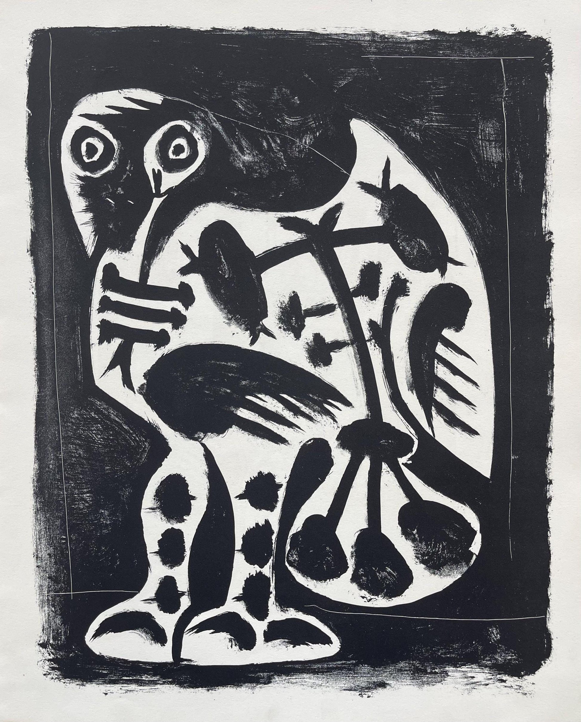 Lithograph on vlin Strathmore Impress paper. Paper Size: 17 x 14 inches. Excellent condition. Inscription: Unsigned and unnumbered, as issued. Notes: From the album, Picasso Lithographs Since 1945, Lent by the Galerie Louise Leiris, Paris - March 14 through April 12, 1959; Organized by the Cincinnati Art Museum; Exhibited in The Contemporary Arts Center, 1959. Published by the Cincinnati Art Museum, Cincinnati, and Galerie Louise Leiris, Paris; printed by Young & Klein, Cincinnati, 1959. Excerpted from the album, This catalog is composed in Linotype and Monotype Janson by Huxley House with Banco display set by Philmac, both of New York. The lithography is by Young & Klein of Cincinnati on Strathmore's Impress. Typography and design by Noel Martin.