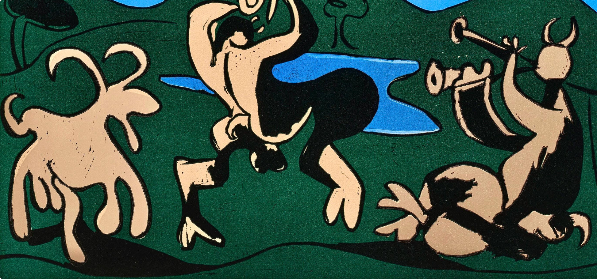 Pablo Picasso, Faunes Et Chvre (Orozco 214), Grabados Al Linleo, Linocut