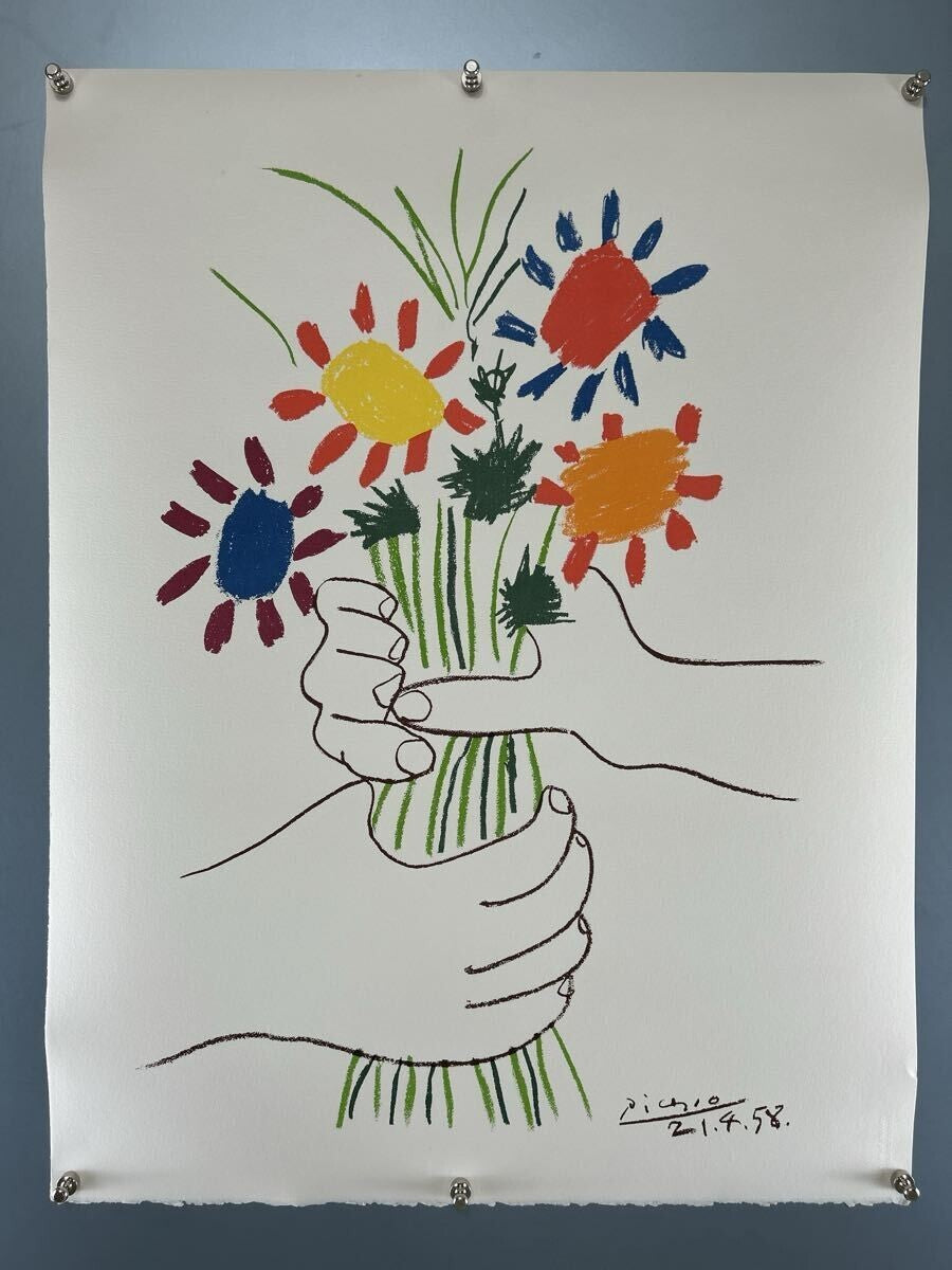 Pablo Picasso Hand Holding Bouquet Lithograph