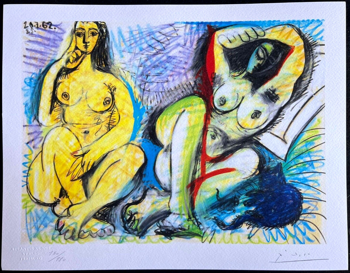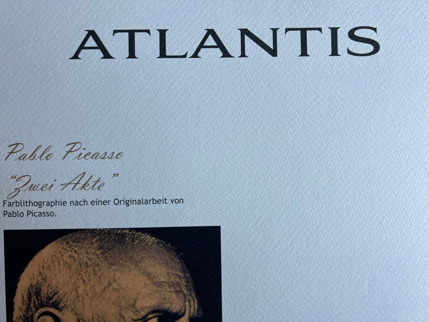 Pablo Picasso Lithograph COA 180Es. Signed Numbered And Limited Pablo Picasso " Two acts " Full sheet printed chromolitography in 1978 In 180 specimens from Atlantis Verlag, Freiburg 31 x 40 cm Signature Pablo Picasso on the slab COA signed in Penna Dry and authentic stamp of the publishing house Atlantis Kunst Verlag Freiburg Pablo Picasso "Two acts" Full sheet printed chromolitography in 1978In 180 specimens from Atlantis Verlag, Freiburg 31 x 40 cm Signature Pa......