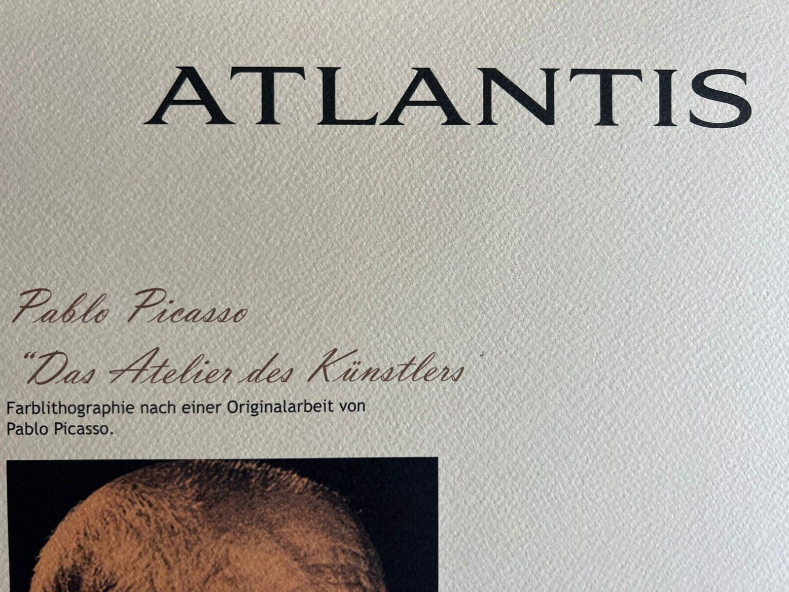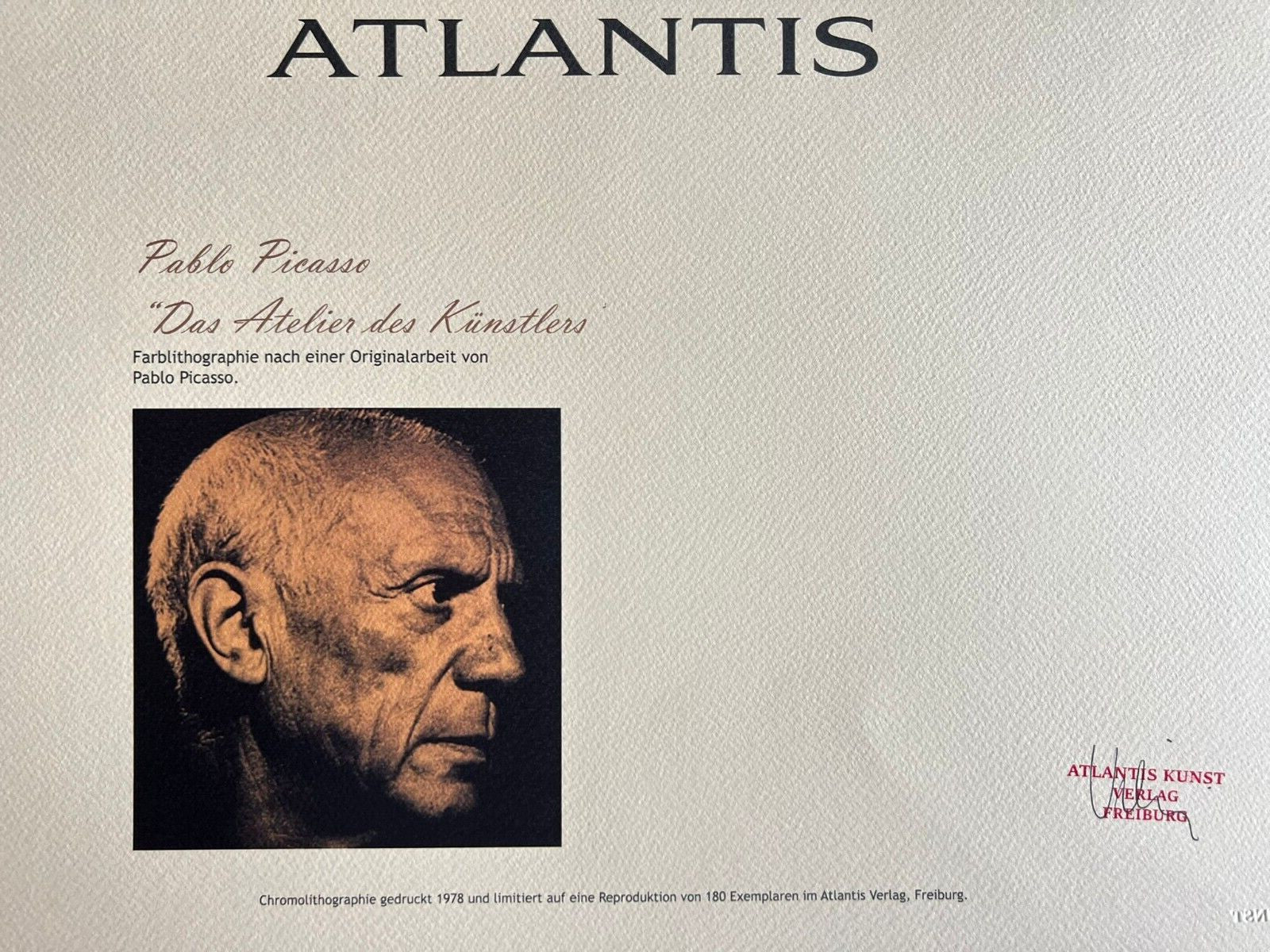 Pablo Picasso Lithograph COA Signed Limited And Numbered Edition In -180 Es- Pablo Picasso "The artist's study " Full sheet printed chromolitography in 1978 In 180 specimens from Atlantis Verlag, Freiburg 30 x 40 cm Signature Pablo Picasso on the slab Dry and authentic stamp of the publishing house Atlantis Kunst Verlag Freiburg Pablo Picasso "The artist's study" Full sheet printed chromolitography in 1978In 180 specimens from Atlantis Verlag, Freiburg 30 x 40 cm Si......