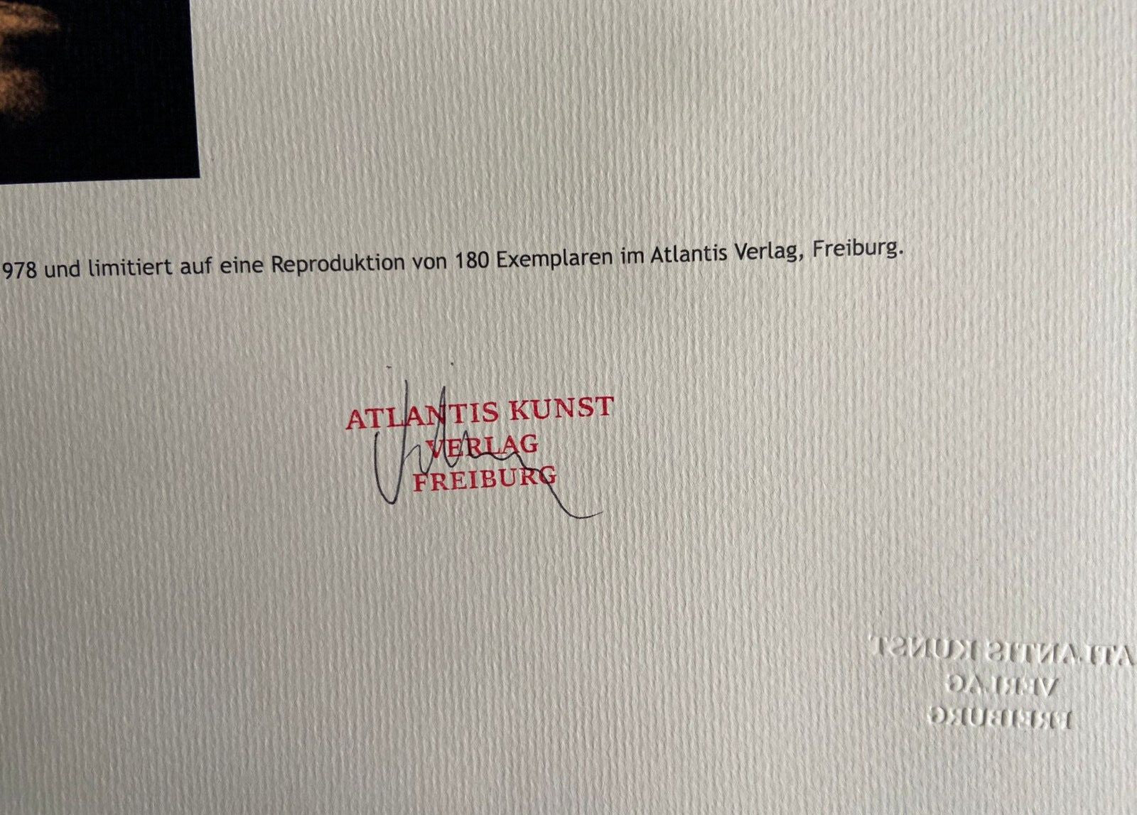 Pablo Picasso Lithograph COA Signed Numbered [Henri Matisse] Pablo Picasso " Portrait of a girl " Full sheet printed chromolitography in 1978 In 180 specimens from Atlantis Verlag, Freiburg 31 x 45 cm Signature Pablo Picasso on the slab COA signed in pen and stamped The progressive number could be different from the one indicated. Dry and authentic stamp of the publishing house Atlantis Kunst Verlag Freiburg Pablo Picasso "Portrait of a girl" Full sheet printed chromolitography in 1978In 180 specimens from Atlantis Verlag, Freiburg 31 x 45 cm Signature Pablo Picasso on the slabCOA signed in pen and stamped The progressive number could be different from the one indicated. Dry and authentic stamp of the publishing house Atlantis Kunst Verlag Freiburg