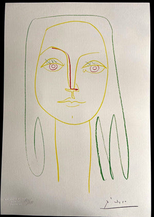 Pablo Picasso " Portrait of a girl " Full sheet printed chromolitography in 1978 In 180 specimens from Atlantis Verlag, Freiburg 31 x 45 cm Signature Pablo Picasso on the slab COA signed in pen and stamped The progressive number could be different from the one indicated. Dry and authentic stamp of the publishing house Atlantis Kunst Verlag Freiburg Pablo Picasso "Portrait of a girl" Full sheet printed chromolitography in 1978In 180 specimens from Atlantis Verlag, Freiburg 31 x 45 cm Signature Pablo Picasso on the slabCOA signed in pen and stamped The progressive number could be different from the one indicated. Dry and authentic stamp of the publishing house Atlantis Kunst Verlag Freiburg