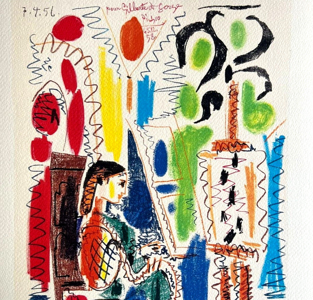 Pablo Picasso "The artist in the studio " Chromolithograph printed full sheet in 1978 in 180 copies from Atlantis Verlag, Freiburg 30 x 40 cm Pablo Picasso signature on the plate COA signed in Penna Dry and authentic stamp of the publishing house Atlantis Kunst Verlag Freiburg Pablo Picasso "The artist in the studio" Chromolithograph printed full sheet in 1978in 180 copies from Atlantis Verlag, Freiburg 30 x 40 cm Pablo Picasso signature on the plateCOA signed in Penna Dry and authentic stamp of the publishing house Atlantis Kunst Verlag Freiburg