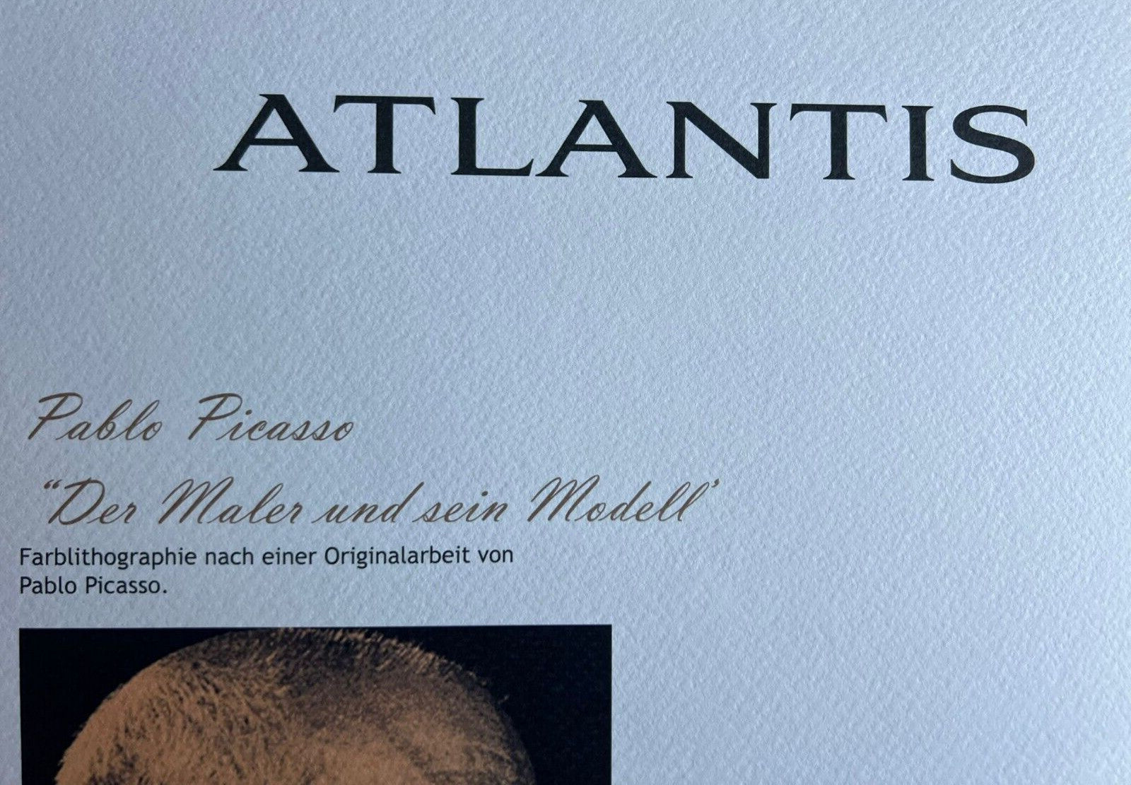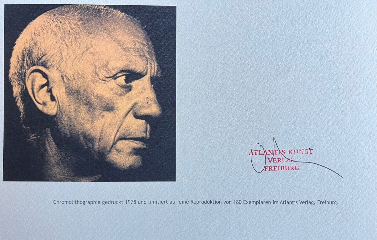 Signature Pablo Picasso on the slab COA Original signed in Penna Dry and authentic stamp of the publishing house Atlantis Kunst Verlag Freiburg