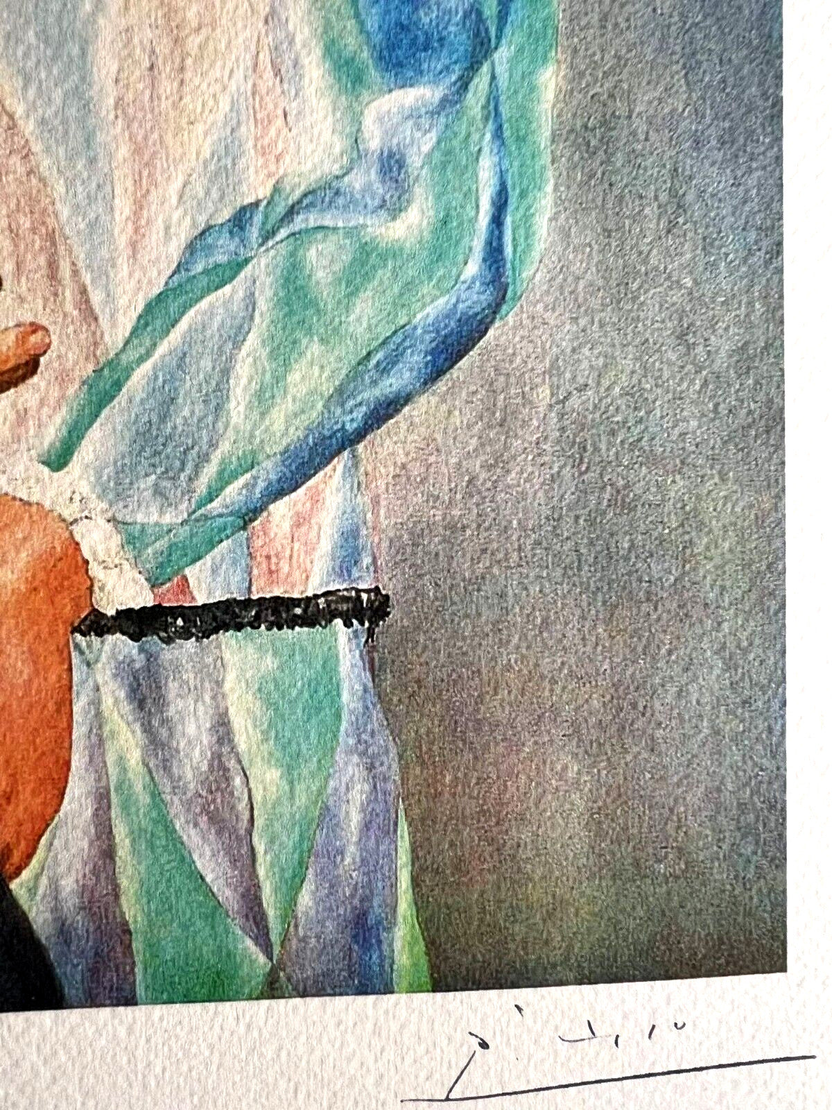 Pablo Picasso " Arlecchino of Barcelona " Full sheet printed chromolitography in 1978 In 180 specimens from Atlantis Verlag, Freiburg 30 x 40 cm Signature Pablo Picasso on the slab COA signed in pen and stamped Dry and authentic stamp of the publishing house Atlantis Kunst Verlag Freiburg Pablo Picasso "Arlecchino of Barcelona" Full sheet printed chromolitography in 1978In 180 specimens from Atlantis Verlag, Freiburg 30 x 40 cm Signature Pablo Picasso on the slabCOA signed in pen and stamped Dry and authentic stamp of the publishing house Atlantis Kunst Verlag Freiburg