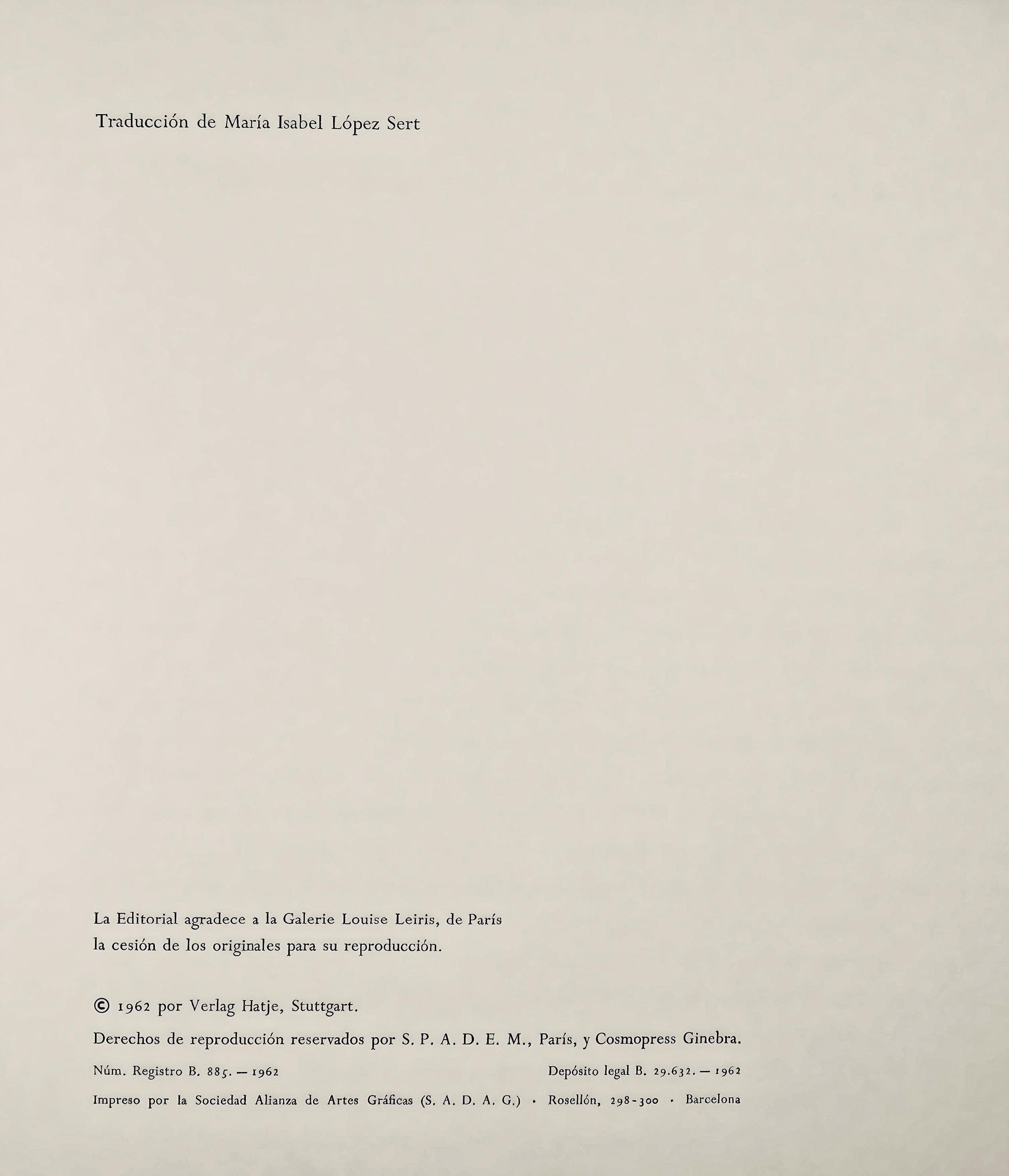 Linocut on vlin paper. Unsigned and unnumbered, as issued. Size: 14 x 12 inches. Excellent condition. Notes: From the album, Pablo Picasso: Grabados al linleo. Published by Gustavo Gili, S.A., Barcelona, and France ditions Cercle d'Art, Paris; printed by Verlag Gerd Hatje, Stuttgart, 1962. Excerpted from the volume (translated from Spanish), This limited edition of the album "Pablo Picasso, engraved in linocut", appeared for release in February 1963, consists of DXX numbered examples from I to DXX. The publisher thanks the Galerie Louise Leiris, of Paris, for the transfer of the originals for printing. 1962 by Verlag Hatje, Stuttgart. Reproduction rights reserved by S. P. A. D. E. M., Paris, and Cosmopress Geneva. No. Registration B. 885. - 1962; Legal deposit B. 29.632. - 1962. Typography printed by the Sociedad Alianza de Artes Grficas (S. A. D. A, G.), Roselln, 298-300, Barcelona.