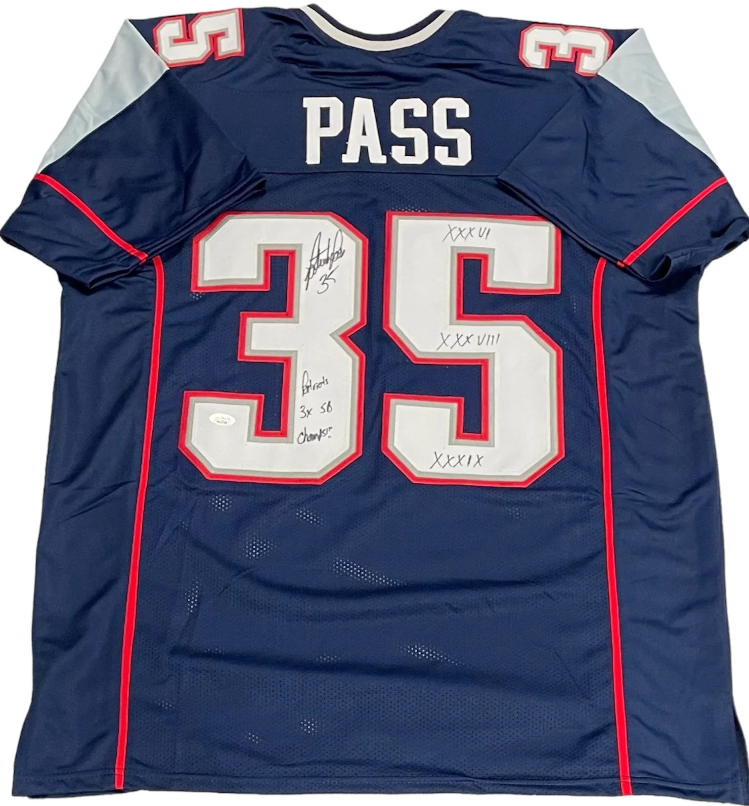 Patrick Pass "Patriots 3X Sb Champs!, Xxxvi, Xxxviii & Xxxix" Autographed New En