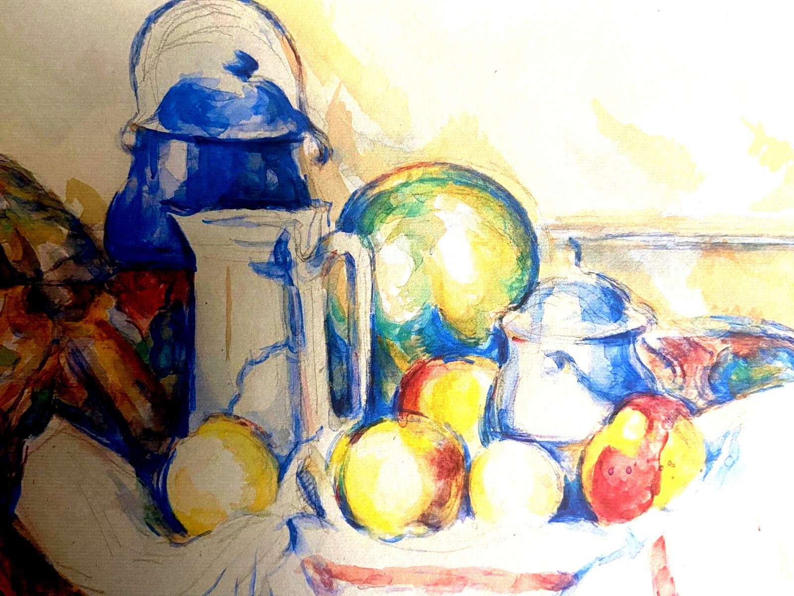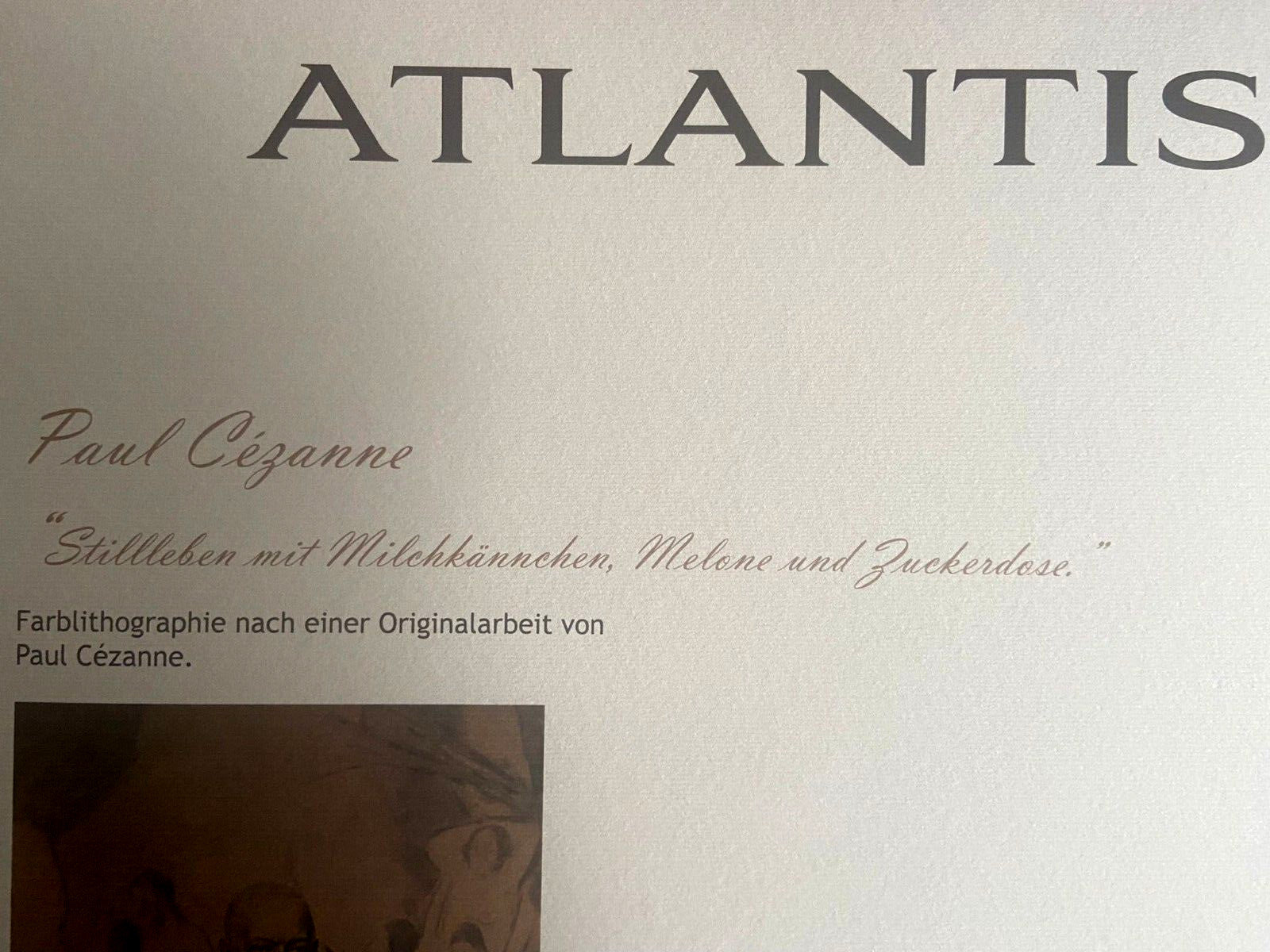 Paul Czanne " Nature morte avec les produits laitiers, le melon et le sucre " Chromolithographie Imprim en 1978 en 180 spcimens d'Atlantis Verlag, Freiburg 32 x 40 cm Signature Paul Czanne sur la dalle Tampon sec et authentique de la maison d'dition Atlantis Kunst Verlag Freiburg Paul Czanne "Nature morte avec les produits laitiers, le melon et le sucre" Chromolithographie Imprim en 1978 en 180 spcimens d'Atlantis Verlag, Freiburg 32 x 40 cm SignaturePaul Czannesur la dalle Tampon sec et authentique de la maison d'dition Atlantis Kunst Verlag Freiburg