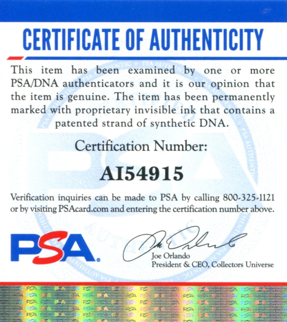 Authenticity is provided by PSA and will be accompanied with a PSA COA, Cert #AI54915.