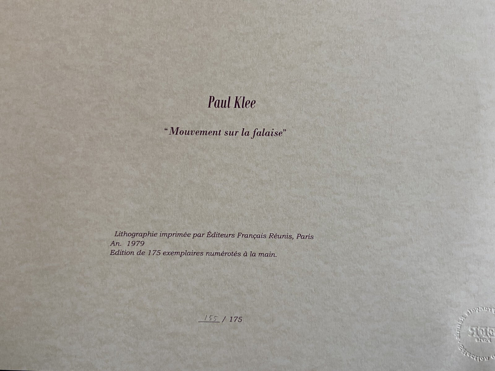 Paul Klee Lithograph Numbered Pencil Stamped Certified Paul Klee " Movement on the cliff " Lithograph from an design by Maestro Paul Klee, printed by the French publishers gathered in 1979 Edition of 175 hand numbered specimens. Dry stamp Editore. Paul Klee signs on the slab. 30 x 40 cm Paul Klee "Movement on the cliff" Lithograph from an design by Maestro Paul Klee, printed by the French publishers gathered in 1979 Edition of 175 hand numbered specimens. Dry stamp Editore. Paul Klee signs on the slab. 30 x 40 cm