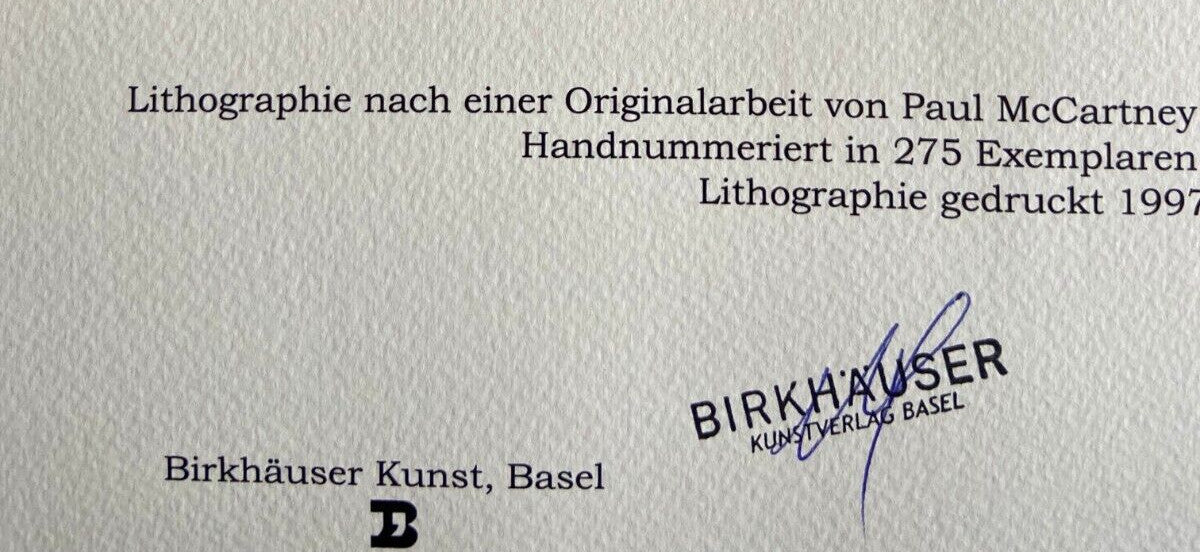 Paul McCartney " regina more green " Lithograph from an work by Paul McCartney, printed in 1997 27x30cm 275 hand-numbered copies signature Paul McCartney on the slab Birkhuser Kunstverlag, Basel Paul McCartney "regina more green" Lithograph from an work by Paul McCartney, printed in 1997 27x30cm 275 hand-numbered copies signaturePaul McCartneyon the slab Birkhuser Kunstverlag, Basel Paul McCartney "regina more green" Lithograph from an work by Paul McCartney, printed in 1997 27x30cm 275 hand-numbered copies signaturePaul McCartneyon the slab Birkhuser Kunstverlag, Basel