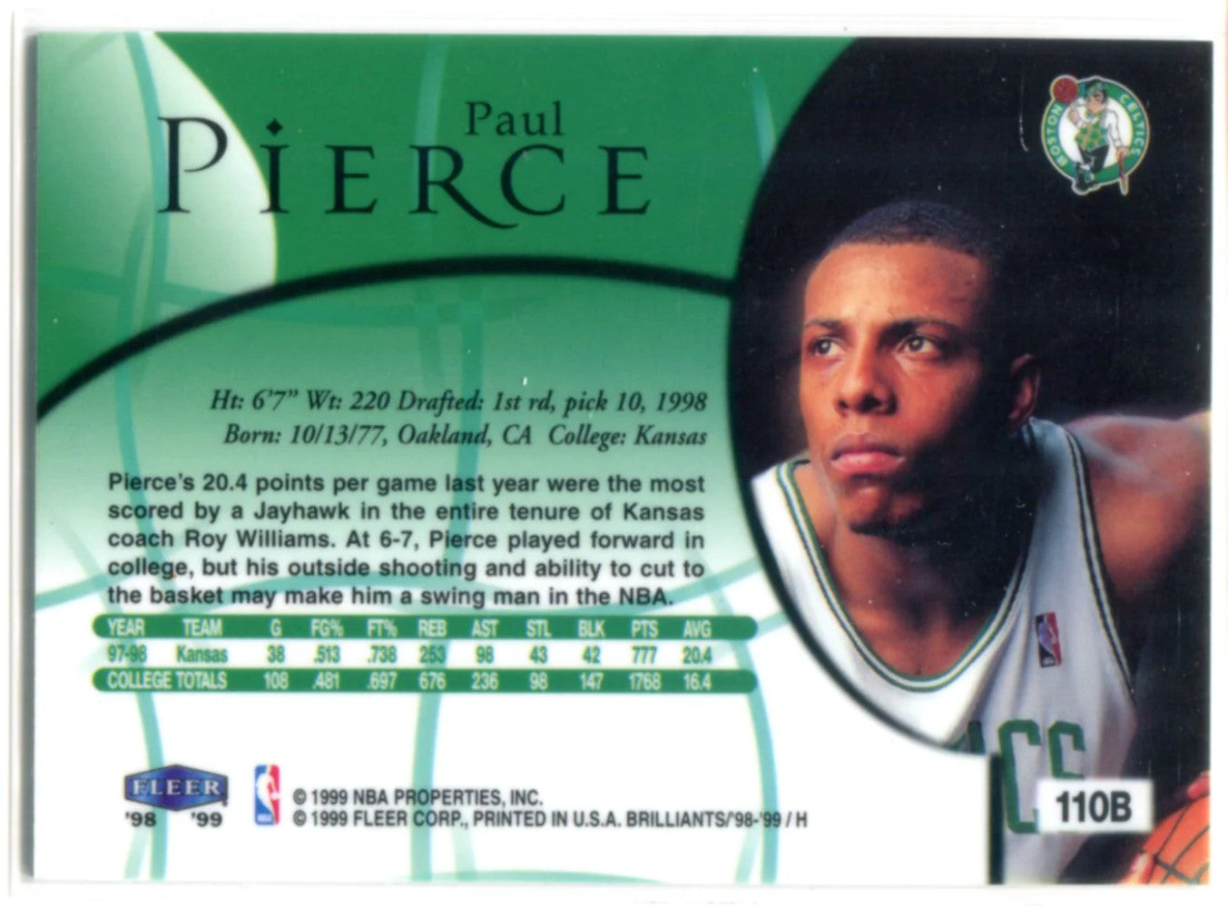 Paul Pierce 1998-99 Fleer Brilliants Rookie Card #110B