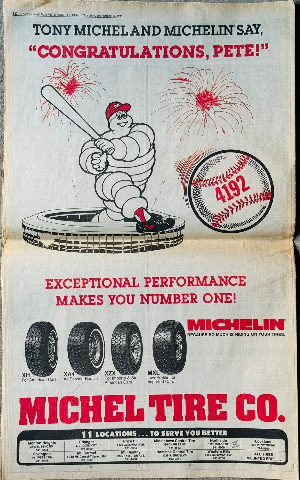 Pete Rose Autographed The Cincinnati Post Newspaper - September 12, 1985