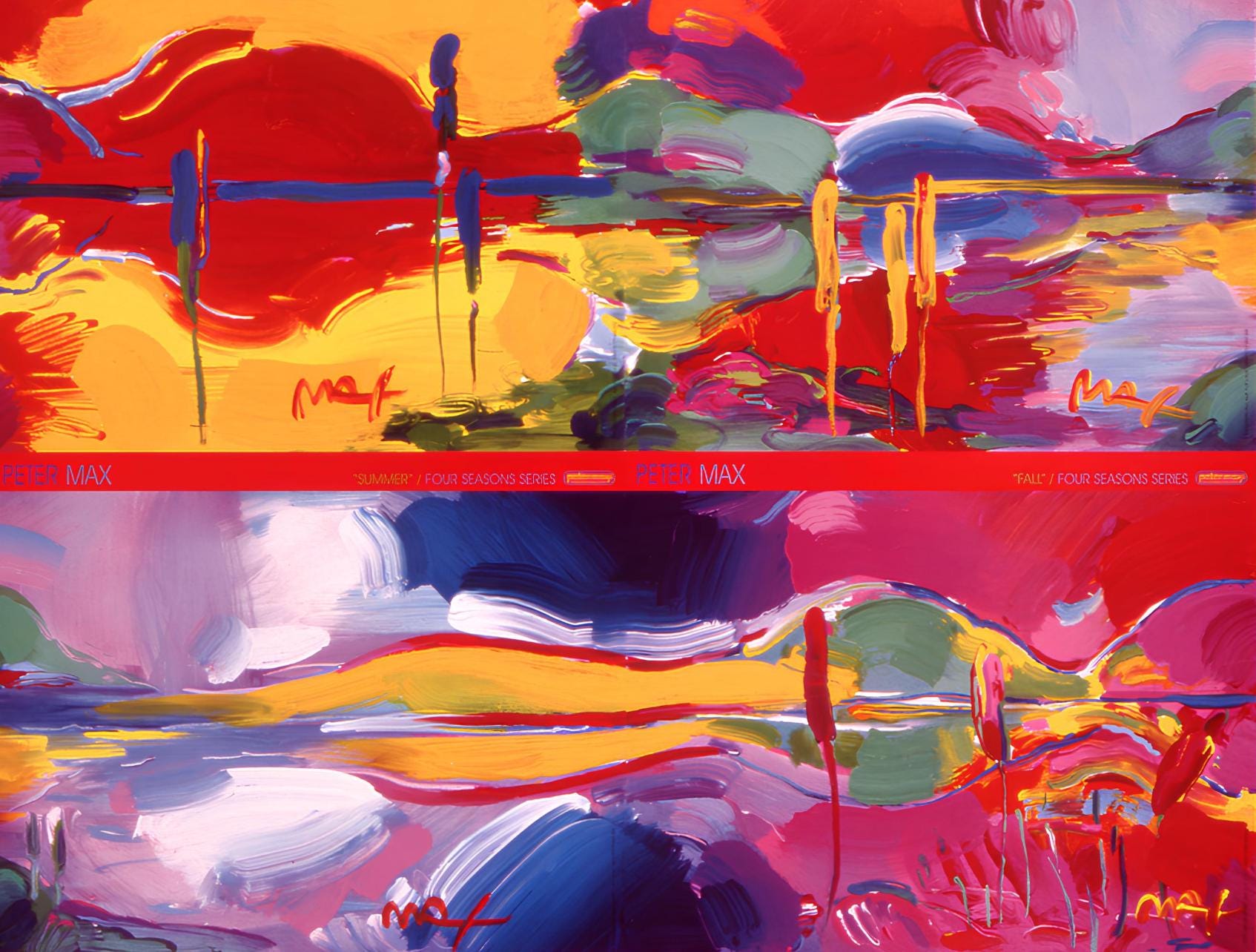 Offset lithograph in colors on gloss archival paper. Paper size: 24 x 36 inches. Excellent condition. Inscription: Hand signed by Peter Max in ink and unnumbered, as issued. Notes: Published and printed by Via Max, Inc., New York, 2000. Policy: We officially represent the Peter Max Studio (ALP, Inc., New York), and this artwork will be shipped directly from the Studio to the buyer. Per the requirements of the Peter Max family and the Studio (ALP, Inc., New York), this artwork will be dedicated by the Peter Max Studio to the buyer or a person of the buyers choosing (first and last name). Excerpted from the Peter Max Archives, Maxs bold color spectrum painting of the four seasons, will be a perennial uplifting adornment for your wall in any season.