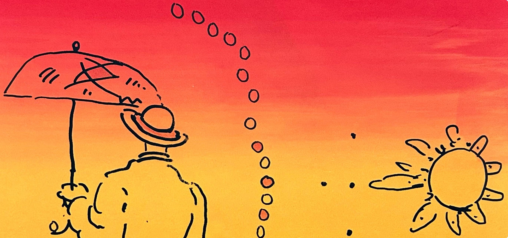 Peter Max, Umbrella Man, Hand Signed, Mixed Media Watercolor And Silkscreen Painting