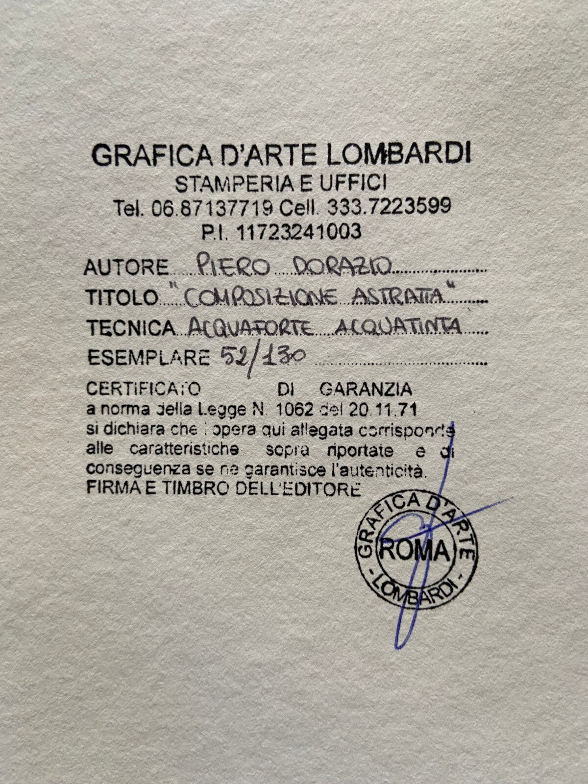 Piero Dorazio "Abstract composition" aquatint etching printed on precious BFK-RIVES Moulin Du Gu paper 58 X 76 cm Specimens: 130 numbered specimen year 1990 edition Publisher's dry stamp authenticity certificate according to the law of the publisher Piero Dorazio "Abstract composition" aquatint etching printed on precious BFK-RIVES Moulin Du Gu paper 58 X 76 cm Specimens: 130 numbered specimen year 1990 edition Publisher's dry stamp authenticity certificate according to the law of the publisher Piero Dorazio "Abstract composition" aquatint etching printed on precious BFK-RIVES Moulin Du Gu paper 58 X 76 cm Specimens: 130 numbered specimen year 1990 edition Publisher's dry stamp authenticity certificate according to the law of the publisher
