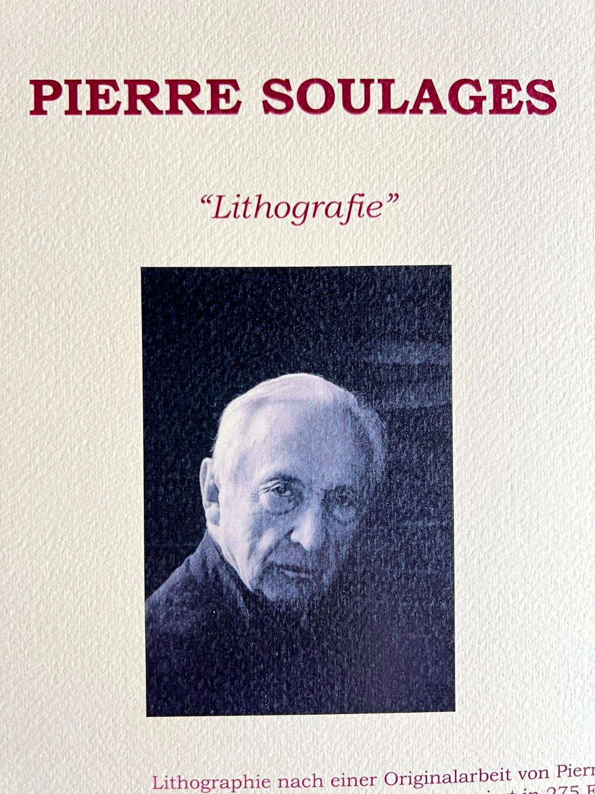 Pierre Soulages COA Signed Op And Numbered In Pencil Limited 1995 Pierre Soulages " Lithograph " Lithograph of an work by Pierre Soulages printed in 1995 32 x 45 cm 275 hand numbered specimens Signature Pierre Soulages on the slab The progressive number could be different from the one indicated Birkhuser Kunstverlag, Basel Pierre Soulages " Lithograph" Lithograph of an work by Pierre Soulages printed in 1995 32 x 45 cm 275 hand numbered specimens Signature Pierre Soulageson the slab The progressive number could be different from the one indicated Birkhuser Kunstverlag, Basel