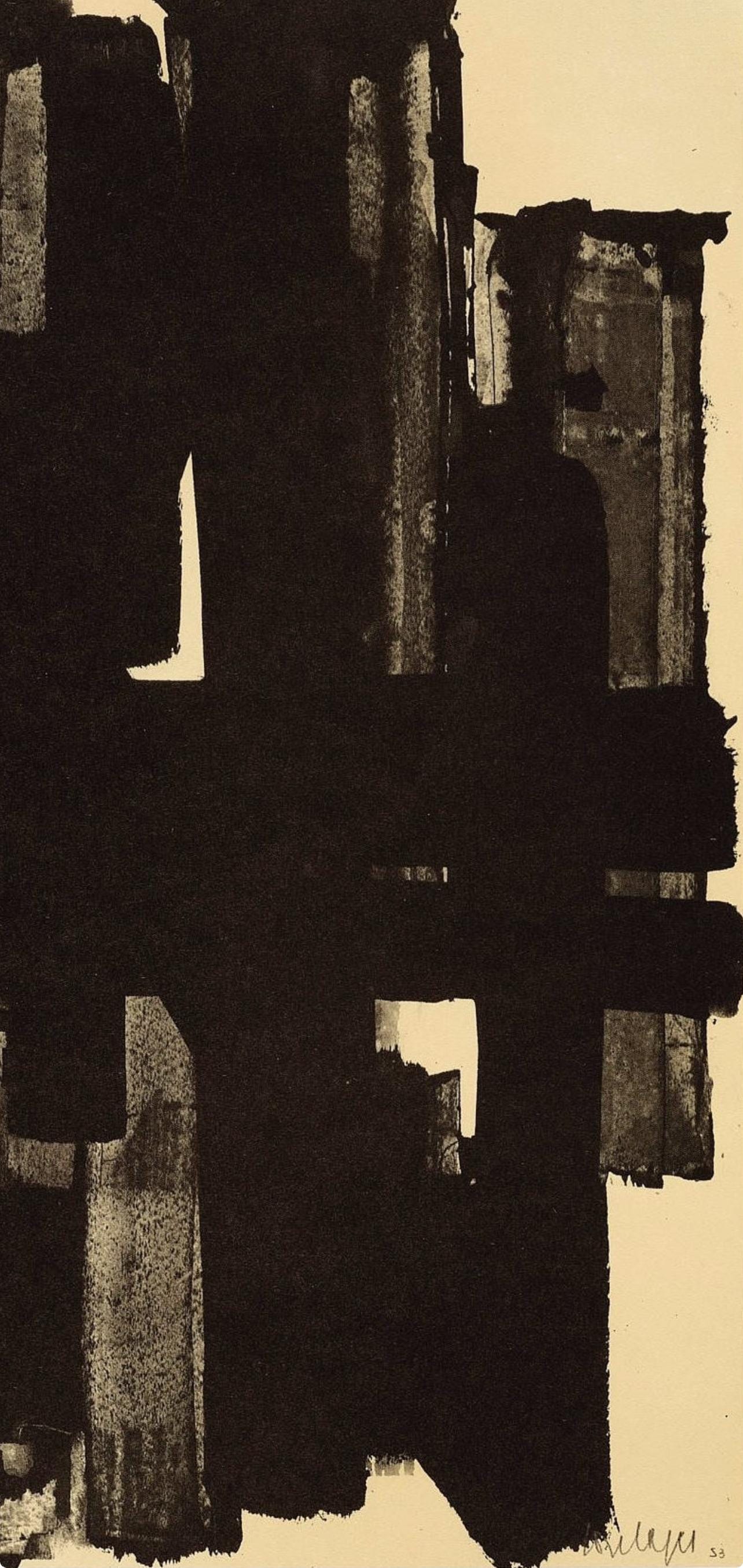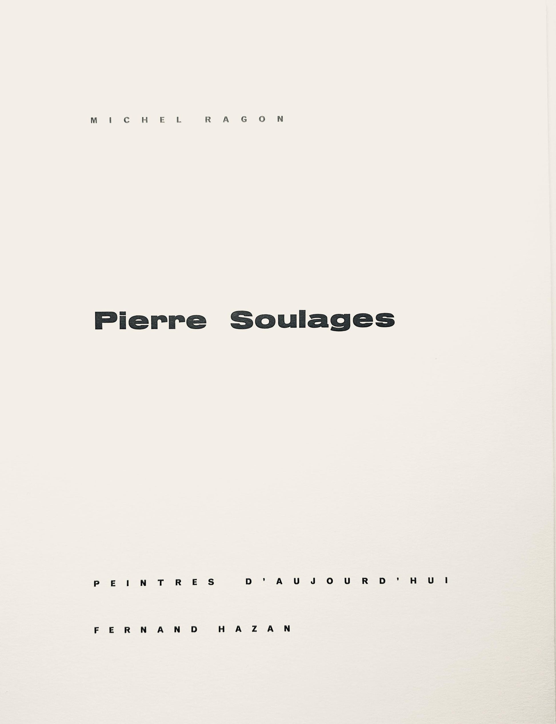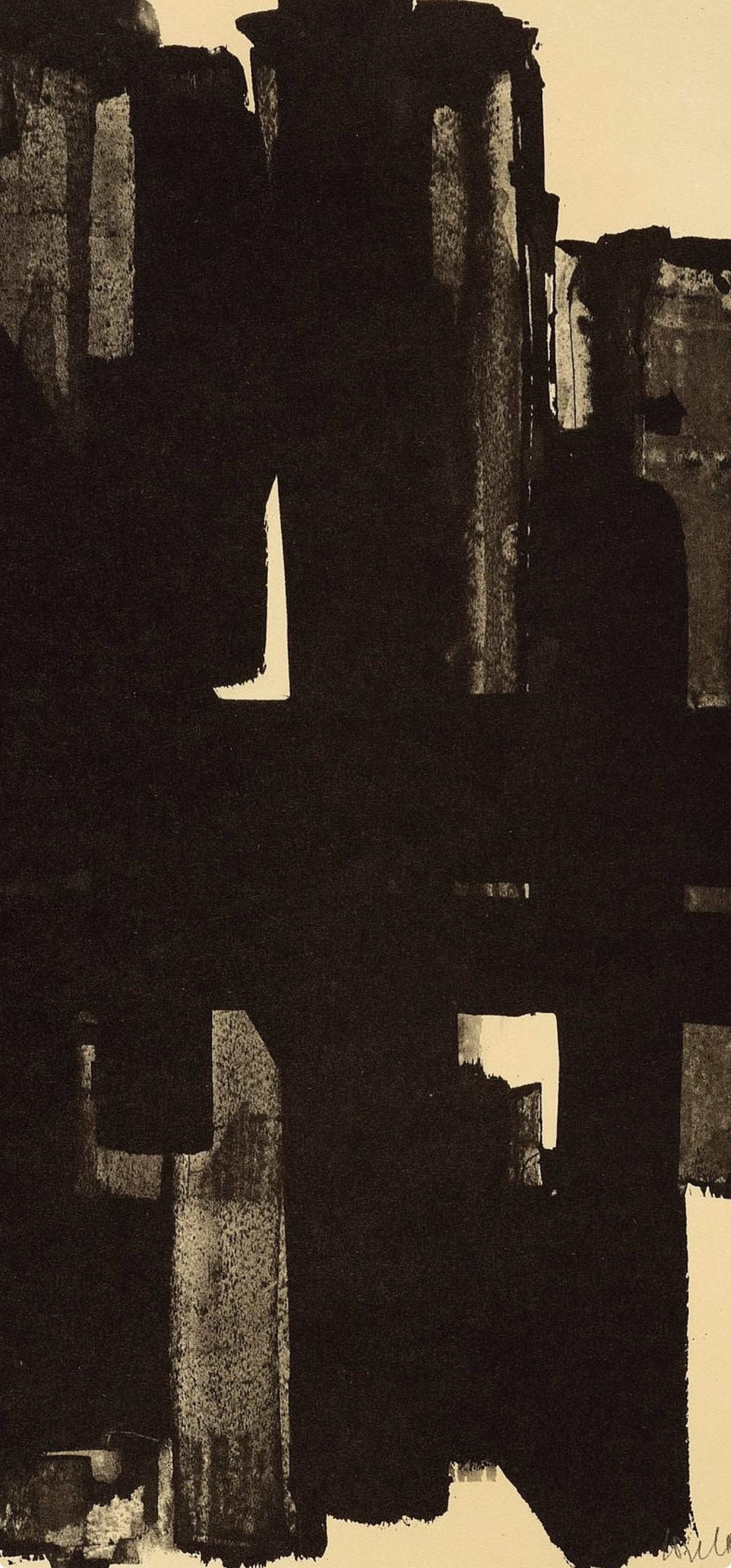 Lithograph on vlin paper. Paper Size: 14.173 x 11.181 inches. Excellent condition. Inscription: Unsigned and unnumbered, as issued. From the folio, Pierre Soulages: Peintres d'aujourd'hui, 1966. Published by Fernand Hazan, Paris; printed by l'Imprimerie Lecot, Paris, April 1966. Excerpted from the folio (translated from French), The illustrations for this album, which was completed in April 1966, were made by Bussire Arts Graphiques and drawn by l'Imprimerie Lecot. The text was drawn by l'Imprimerie Darantiere and the binding made by F.I.A.P., according to the models of Marcel Jacno.