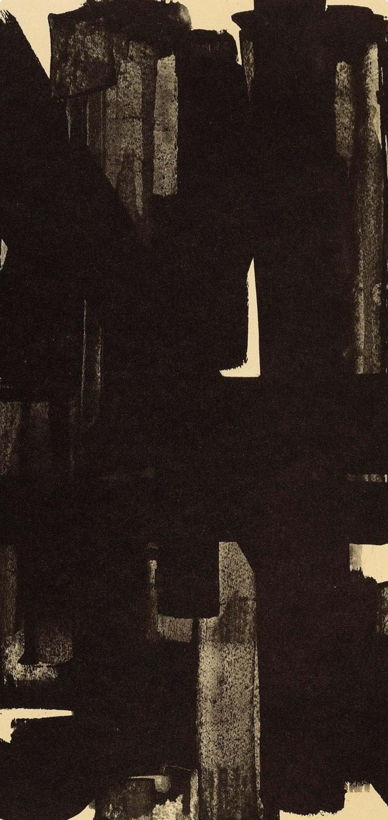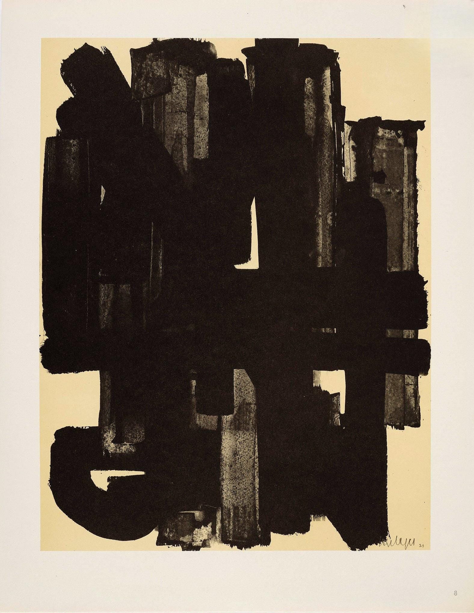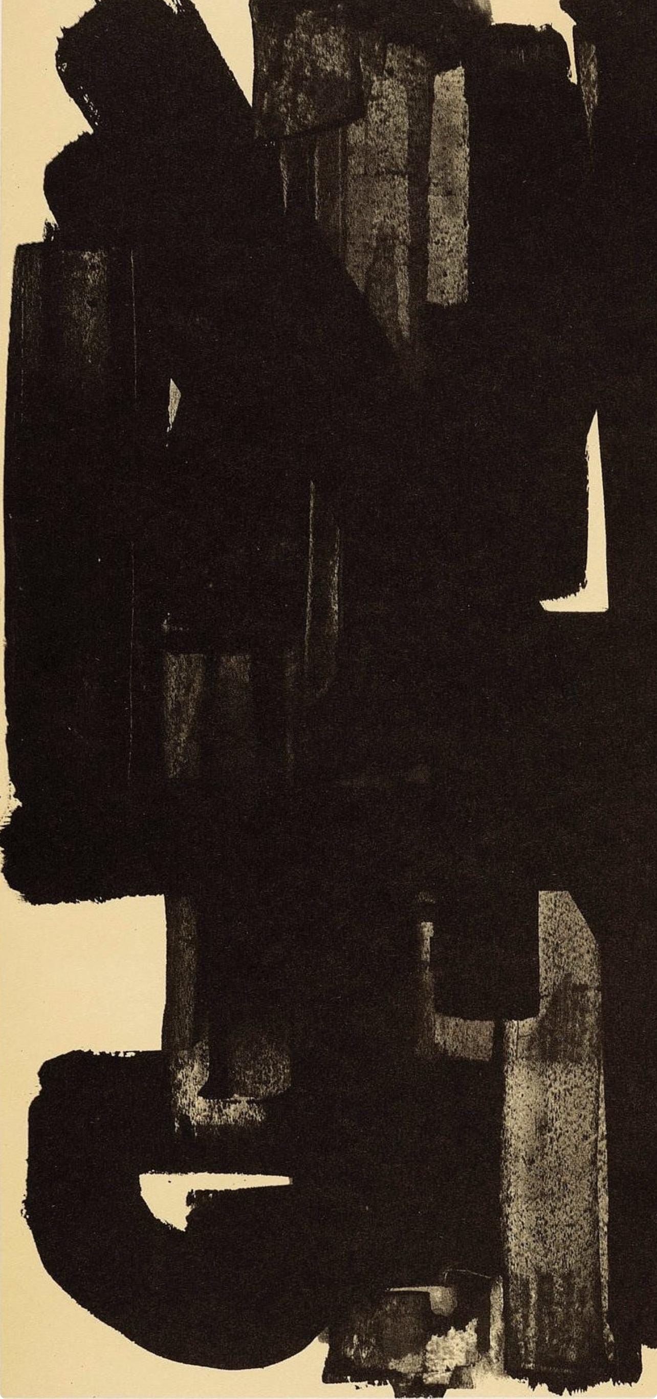 Lithograph on vlin paper. Paper Size: 14.173 x 11.181 inches. Excellent condition. Inscription: Unsigned and unnumbered, as issued. From the folio, Pierre Soulages: Peintres d'aujourd'hui, 1966. Published by Fernand Hazan, Paris; printed by l'Imprimerie Lecot, Paris, April 1966. Excerpted from the folio (translated from French), The illustrations for this album, which was completed in April 1966, were made by Bussire Arts Graphiques and drawn by l'Imprimerie Lecot. The text was drawn by l'Imprimerie Darantiere and the binding made by F.I.A.P., according to the models of Marcel Jacno.