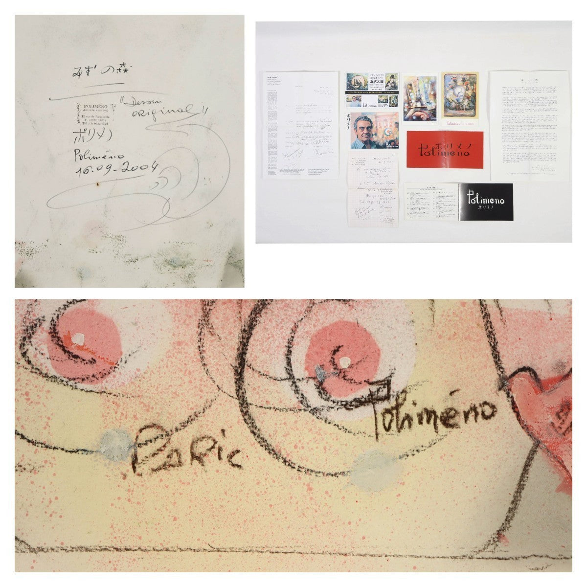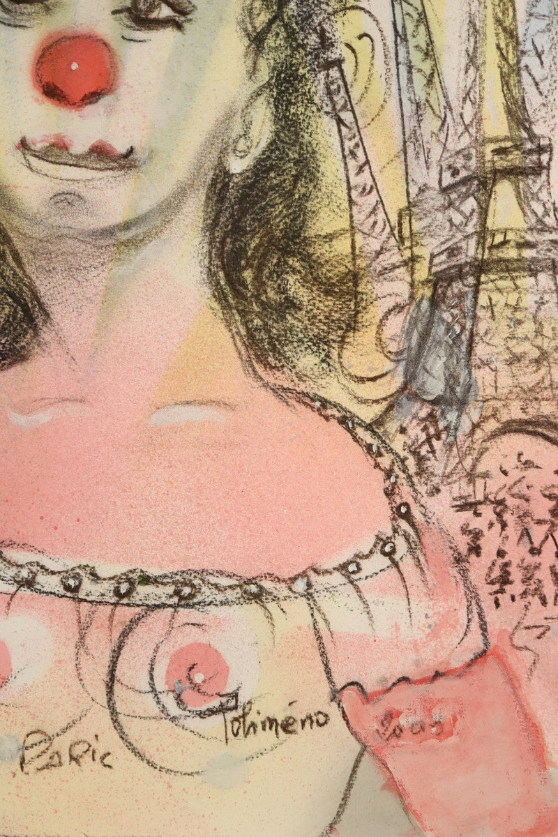 Polimeno 2004 Original Pastel Drawing "Jeune Femme La Tour Eiffel" Signed