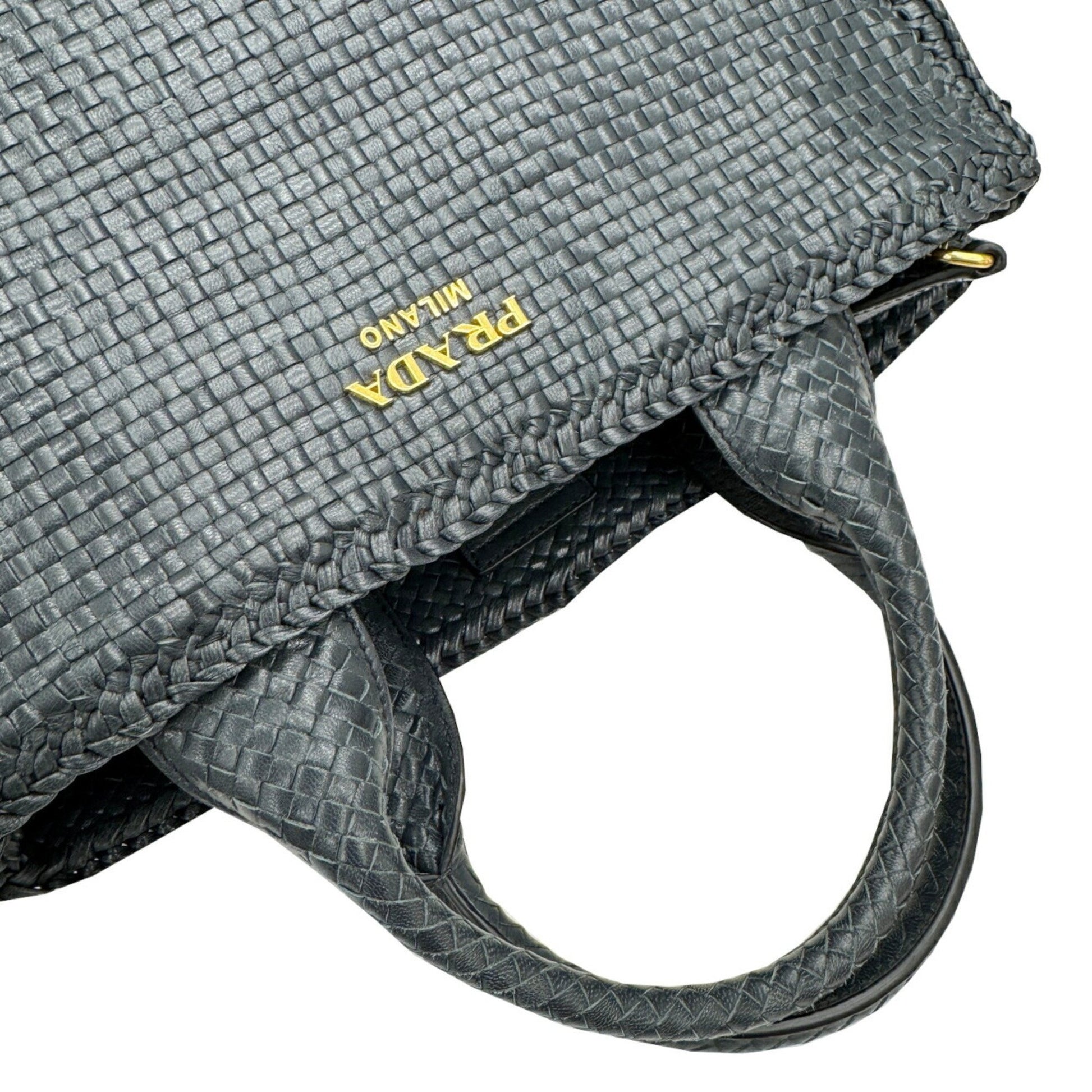 Prada 1Bg258 Shoulder Bag Madras Handbag Leather Navy