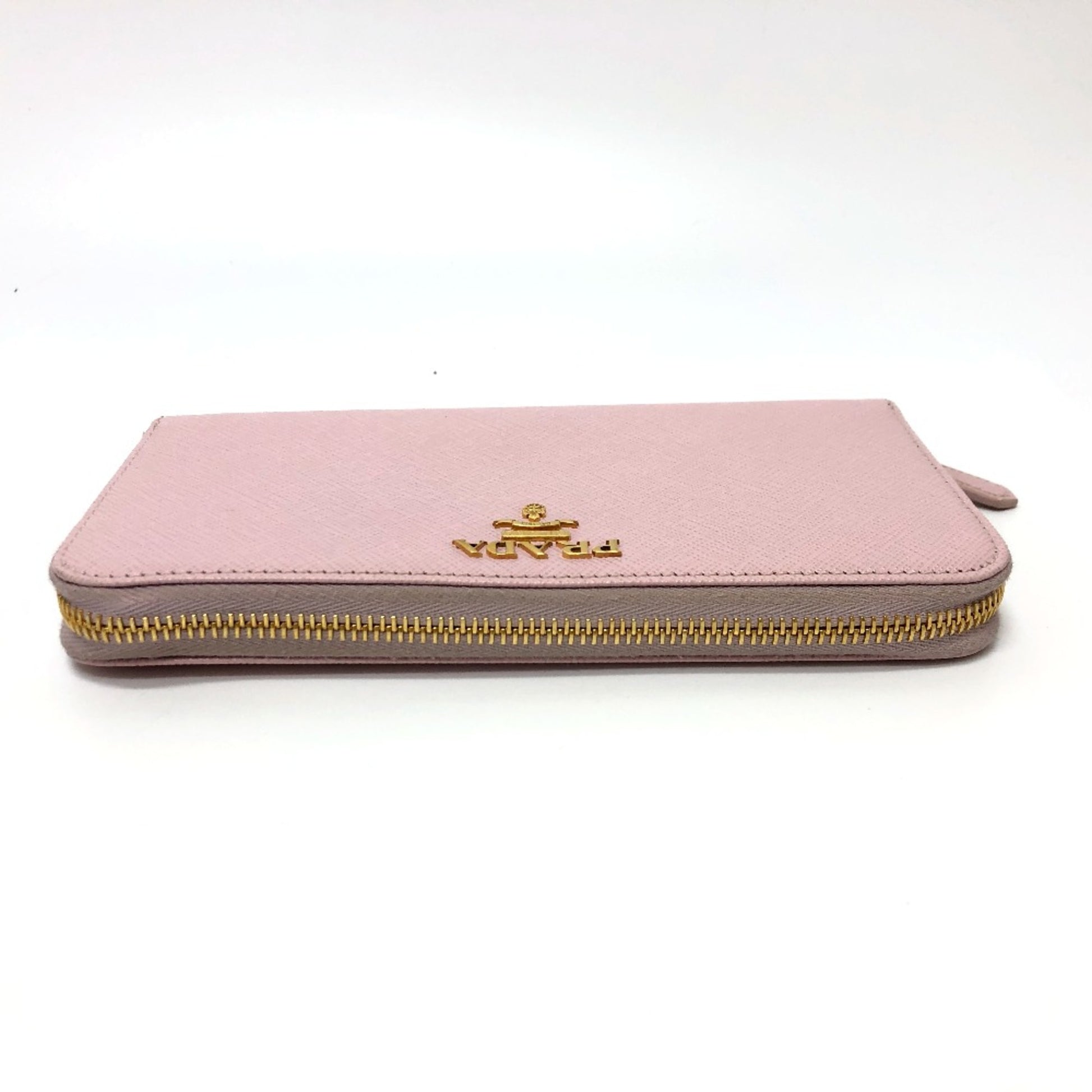 Prada 1Ml506 Logo Zip Around Long Wallet Pink Goldhardware