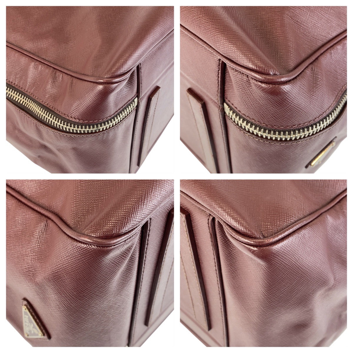 Prada Boston Duffel Bag Leather Wine Red Silvermetal Boston Duffel Bag Business Bag Safiano