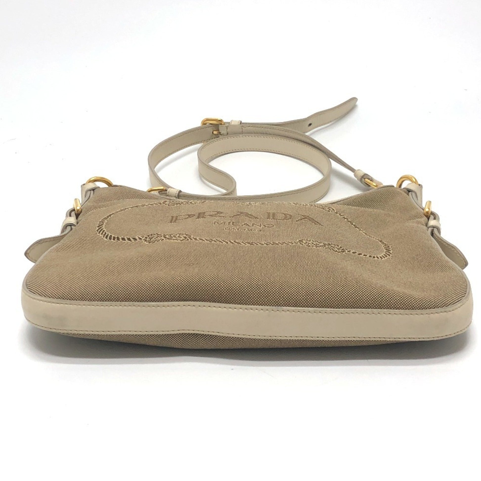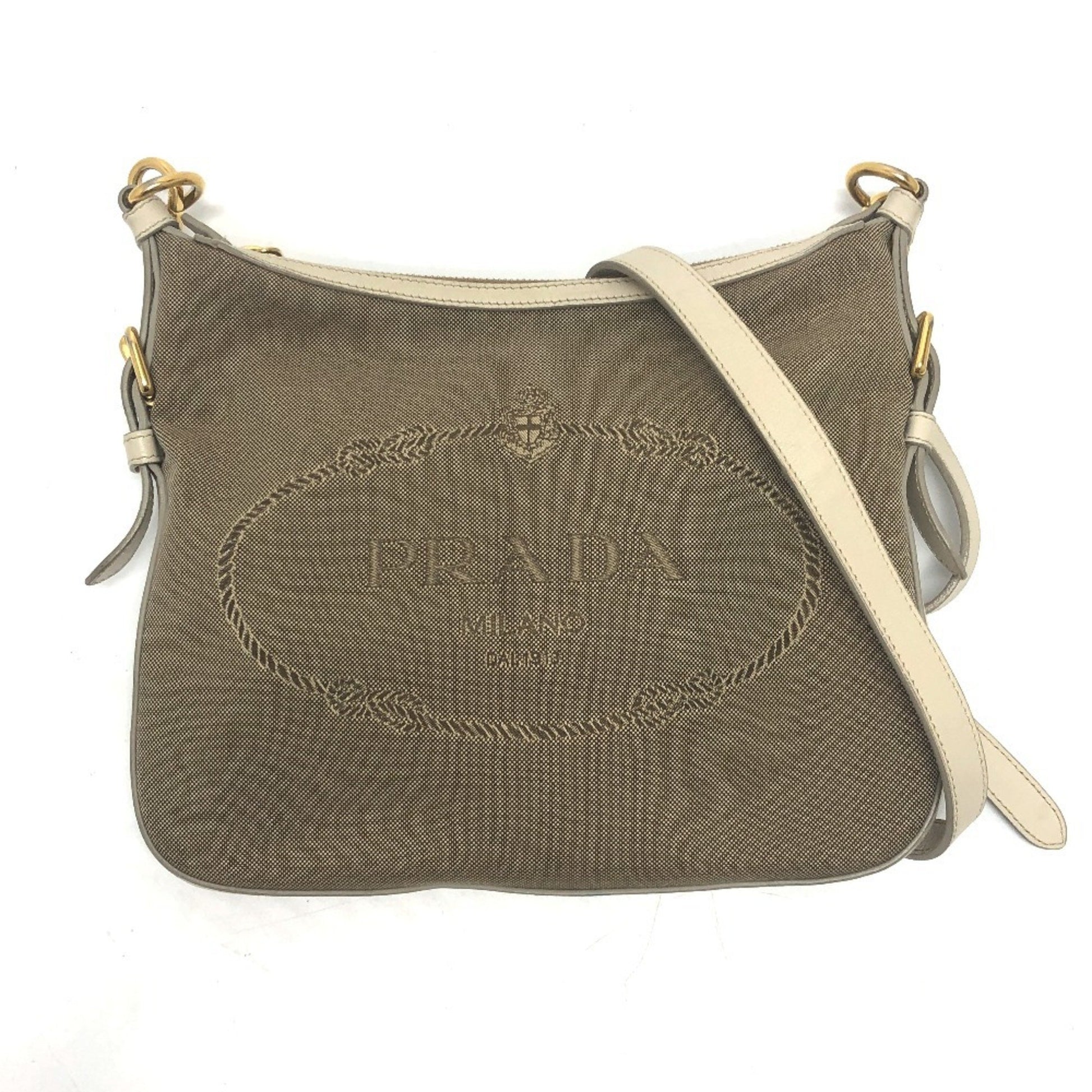 Prada Bt0706 Logo Jacquard Shoulder Bag In Canvas/Leather
