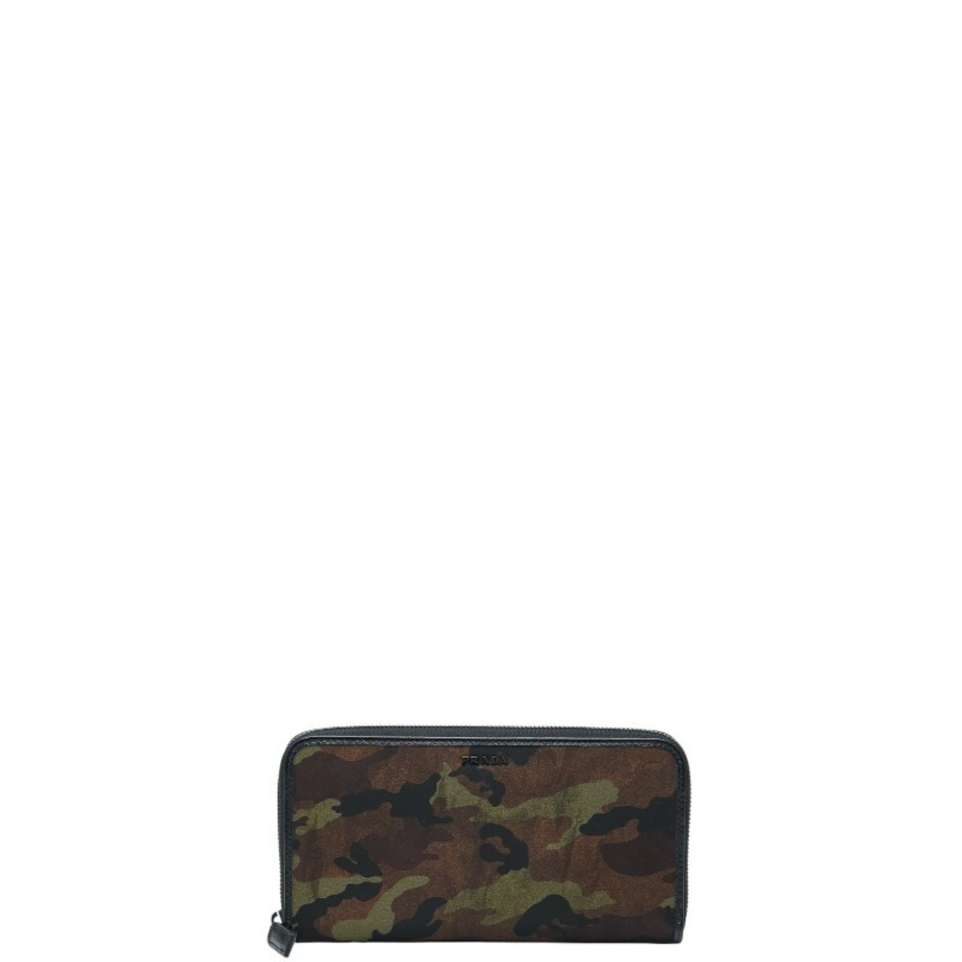 Prada Camouflage Round Zip Long Wallet In Khaki Black Nylon