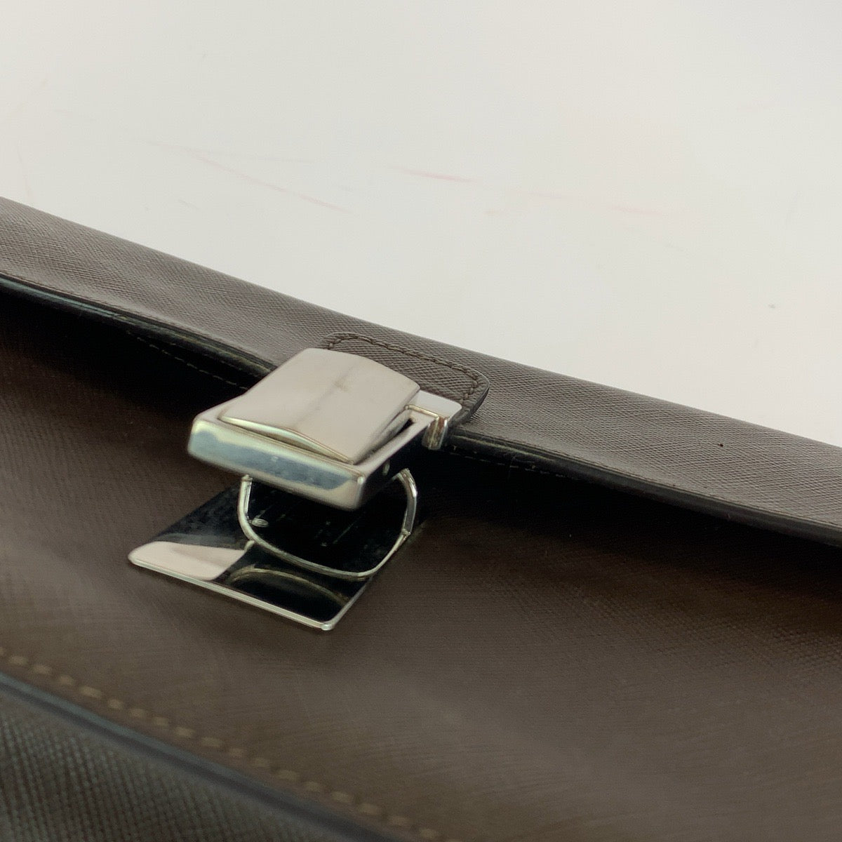 Prada Clutch Bag Leather Brown Silver Metal Clutch Bag Business Bag Safiano Triangle With Logo Mens