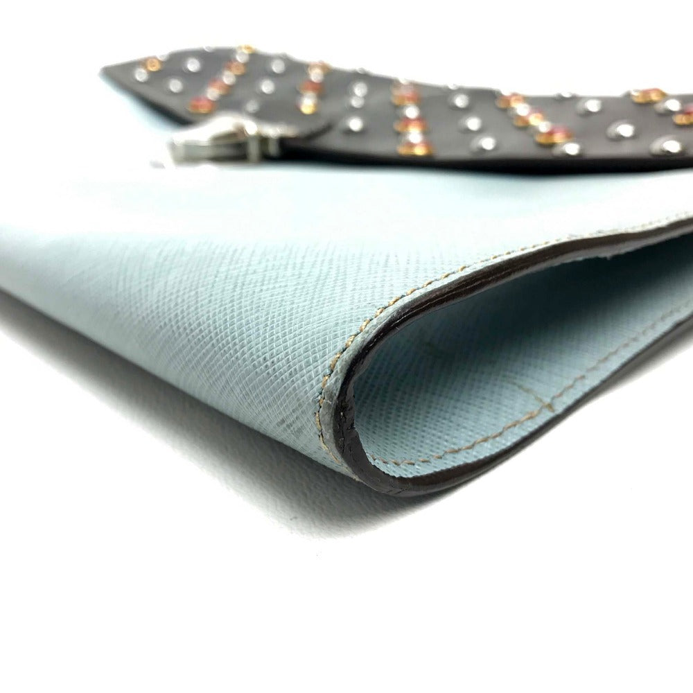 Prada Clutch Bag Vr074C Leather Black Safiano Bijou X Studs Unisex(Unisex)