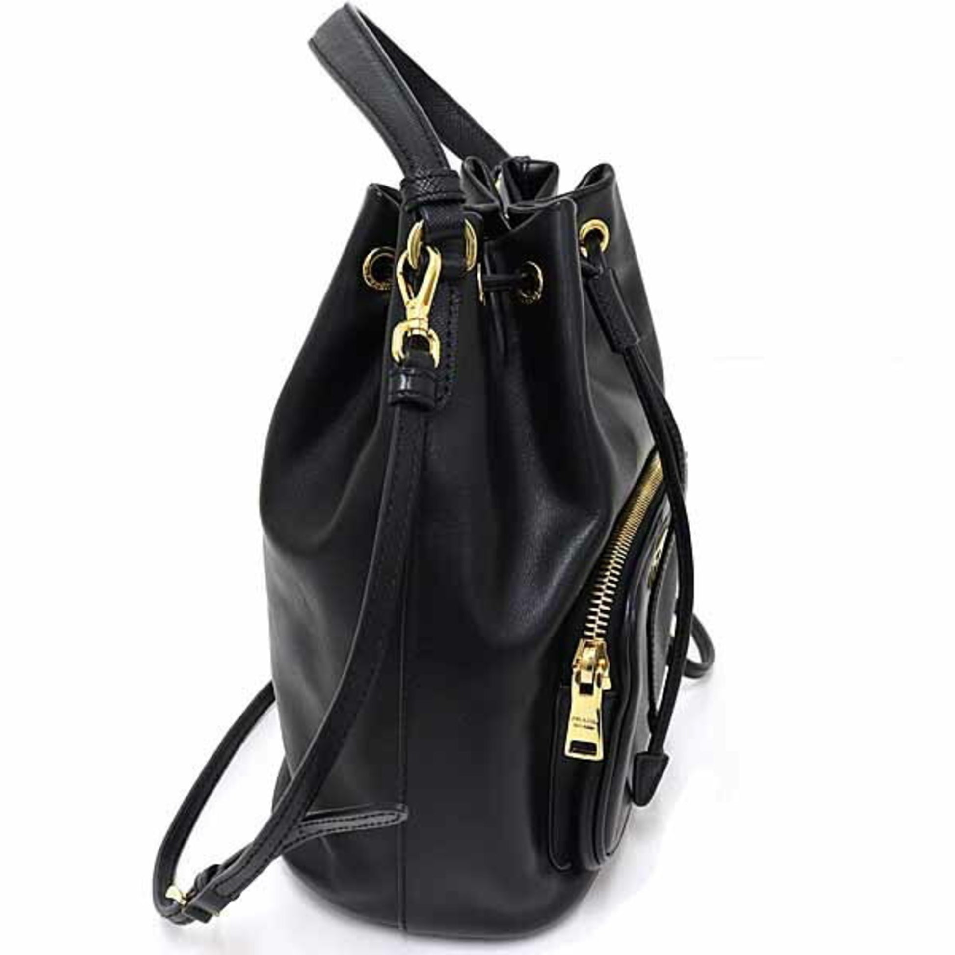 Prada Duet Bucket Bag Shoulder In Soft Calfskin And Saffiano Leather