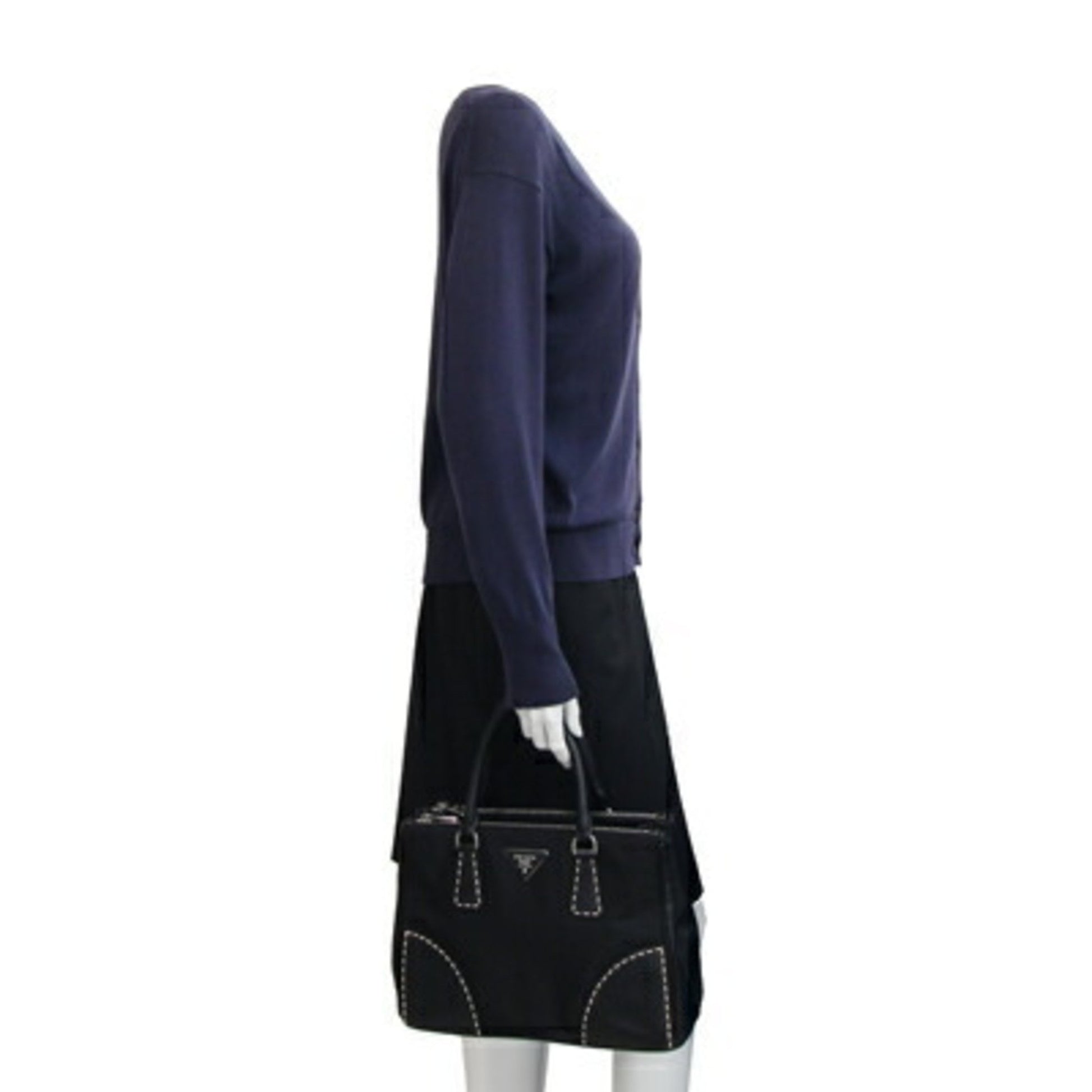 Prada Handbag B1801K Black Nylon Leather Stitching