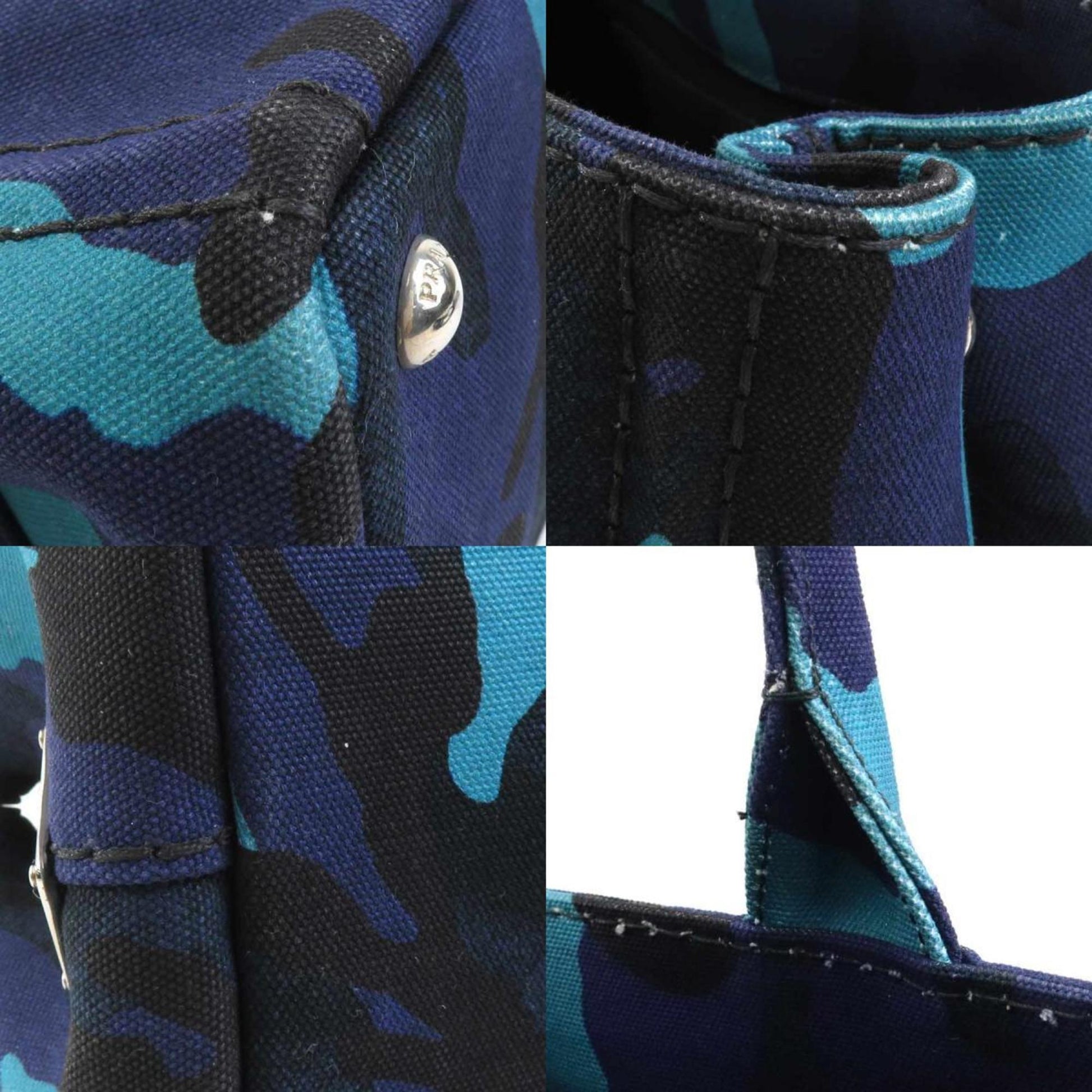 Prada Handbag Shoulder Bag Canapa Canvas Navy Blue Black