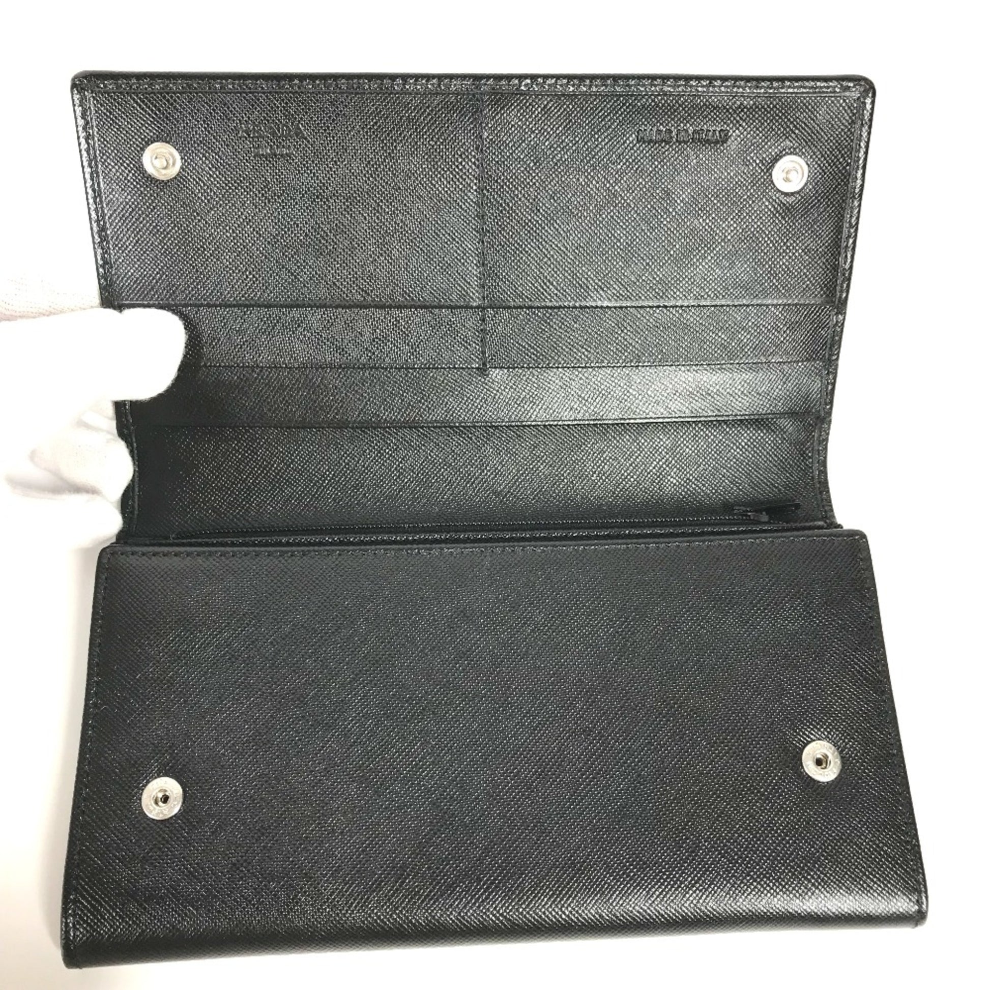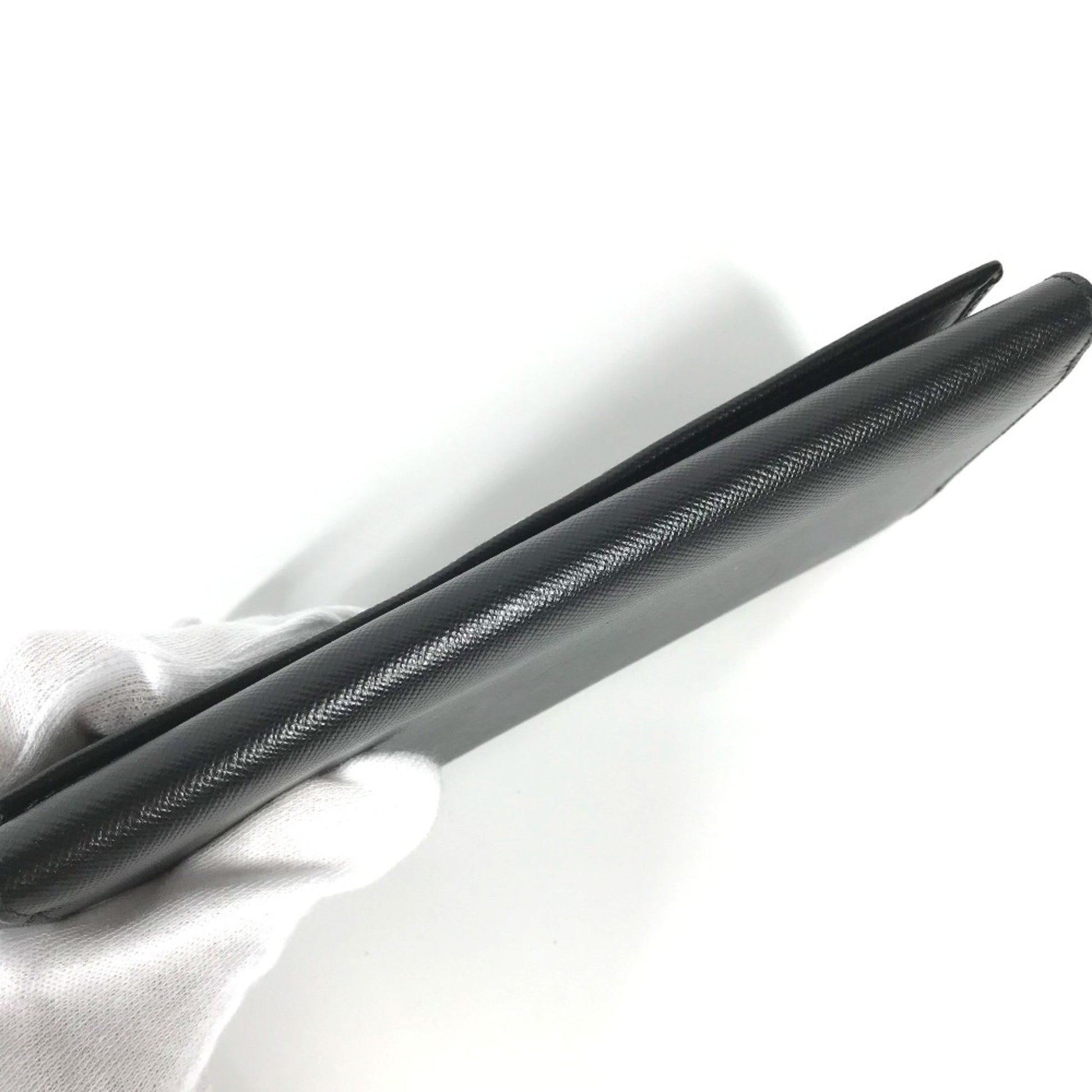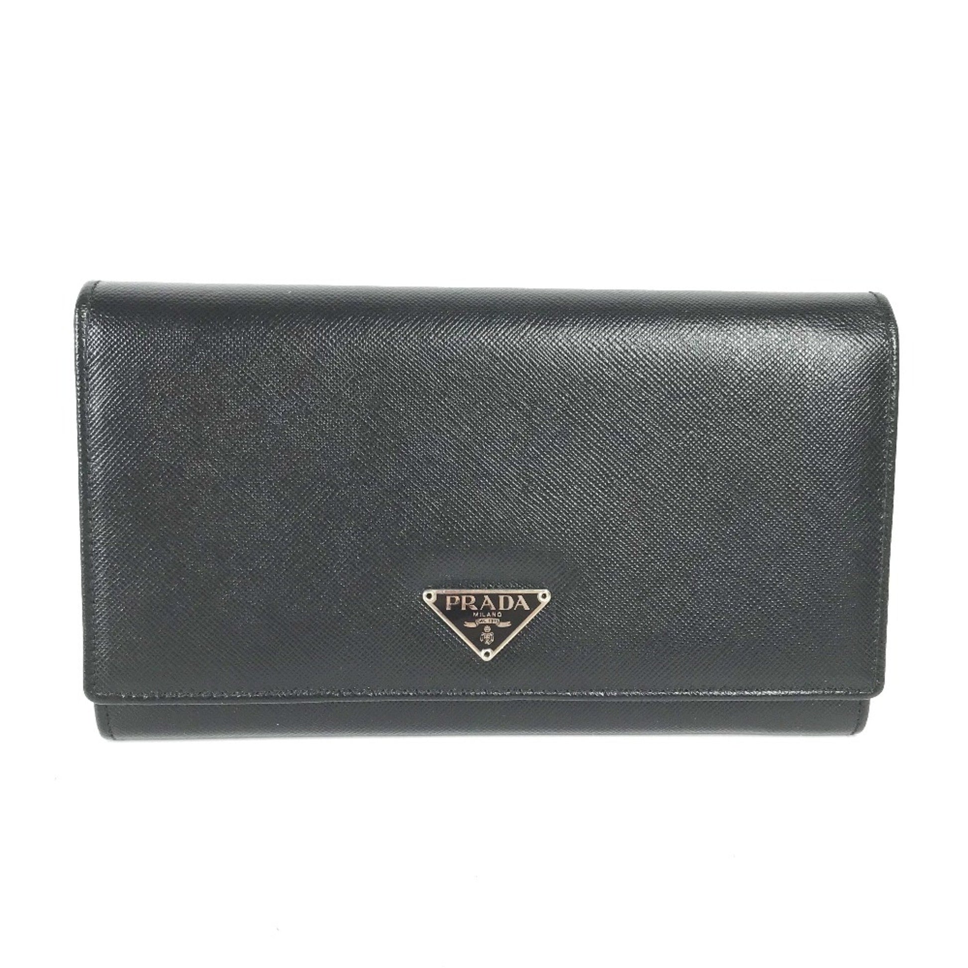 Prada M608A Triangle Logo Triangle Logo Plate Bifold Long Wallet Black