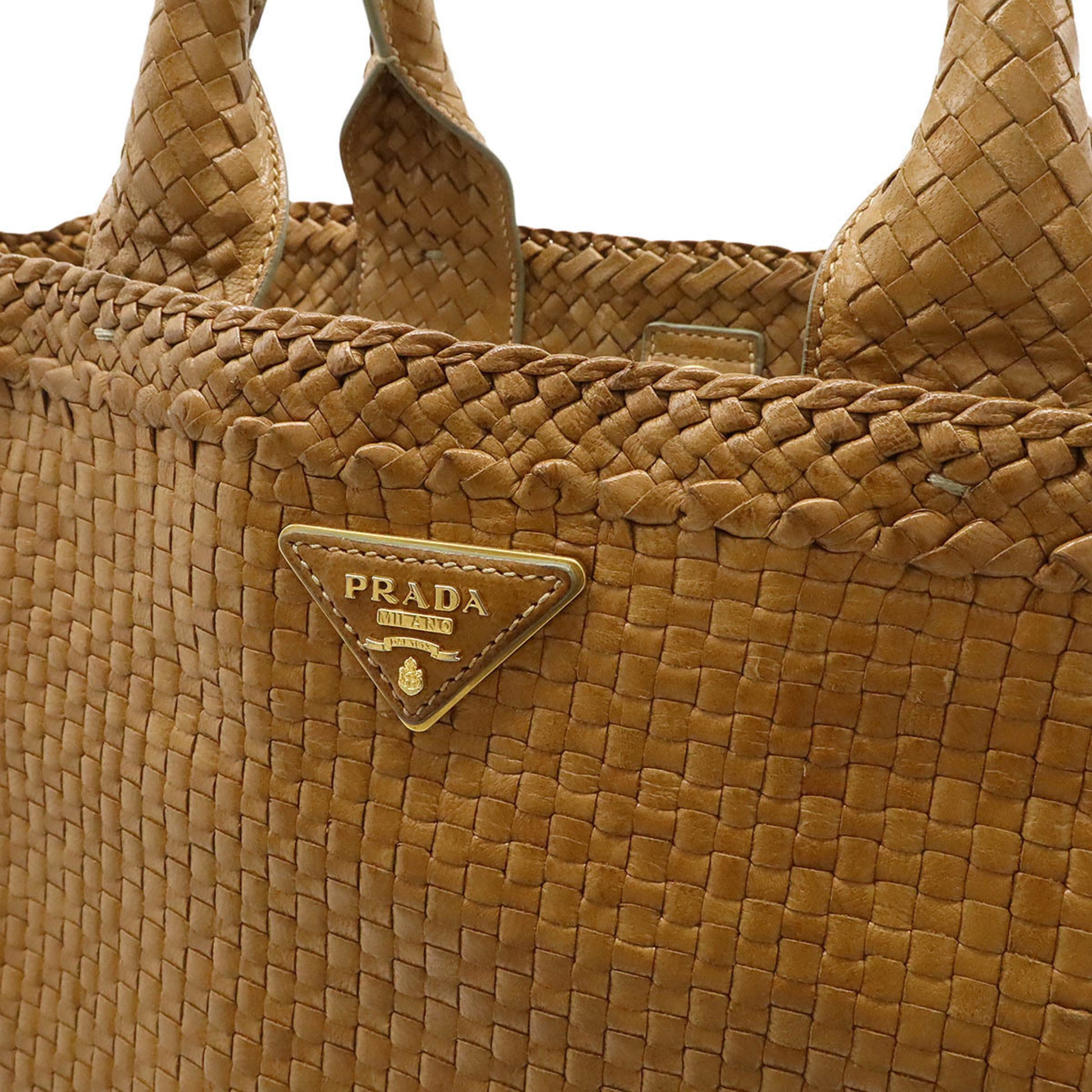 Prada Madras Tote Bag Leather Camel Light Brown Bn2222