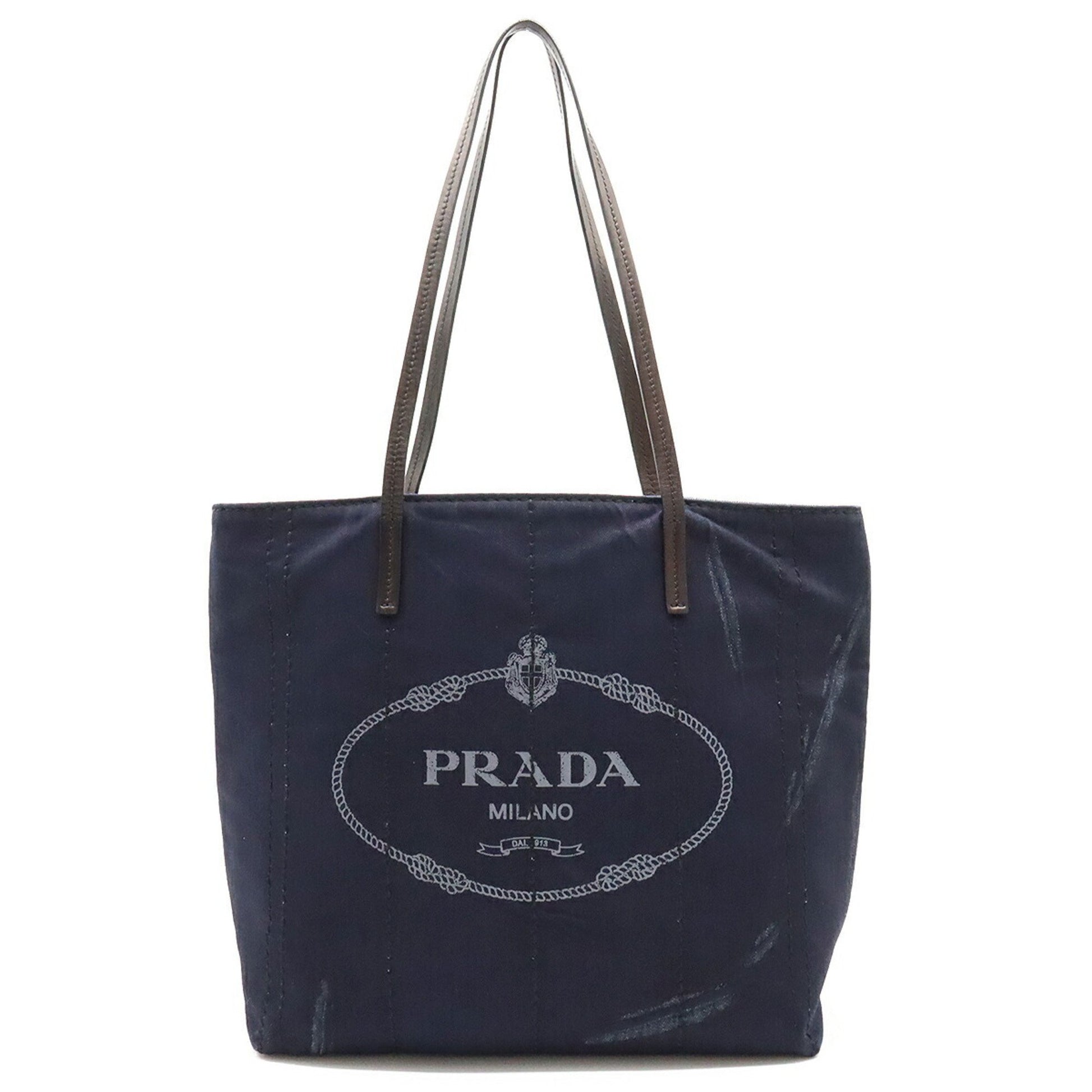 Prada Mistolino Vitello Tote Bag Shoulder Denim Leather Indigo Black 1Bg347