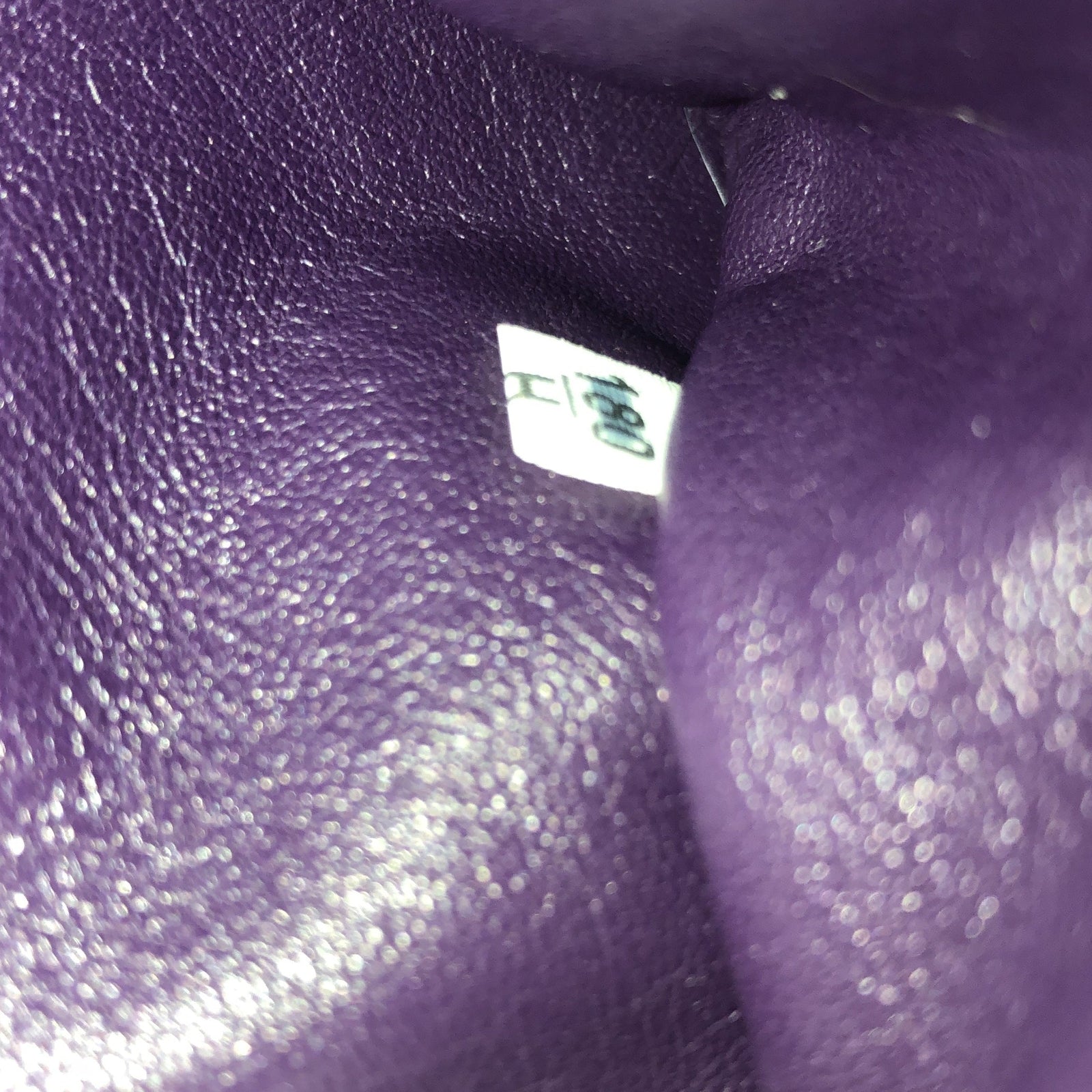 Condition: Good. Creasing, scuffs, wear and light fraying on exterior, strap and underneath flap, discoloration and moderate wear on exterior and flap edges. Scuffs, wear, scuffs and pen marks in interior, scratches, slight discoloration and tarnish on hardware.
