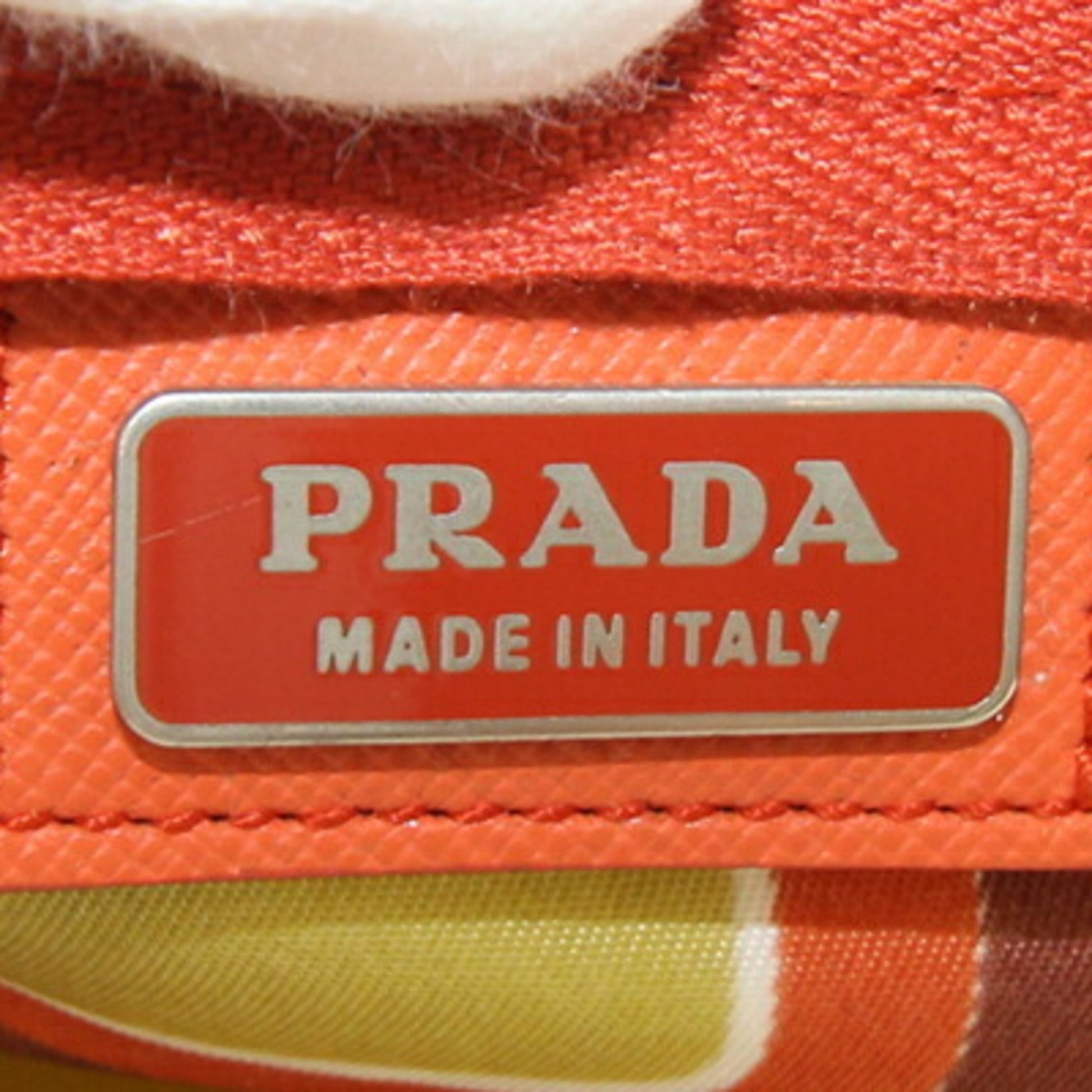 Prada Pouch Orange Light Green Nylon Leather Travel