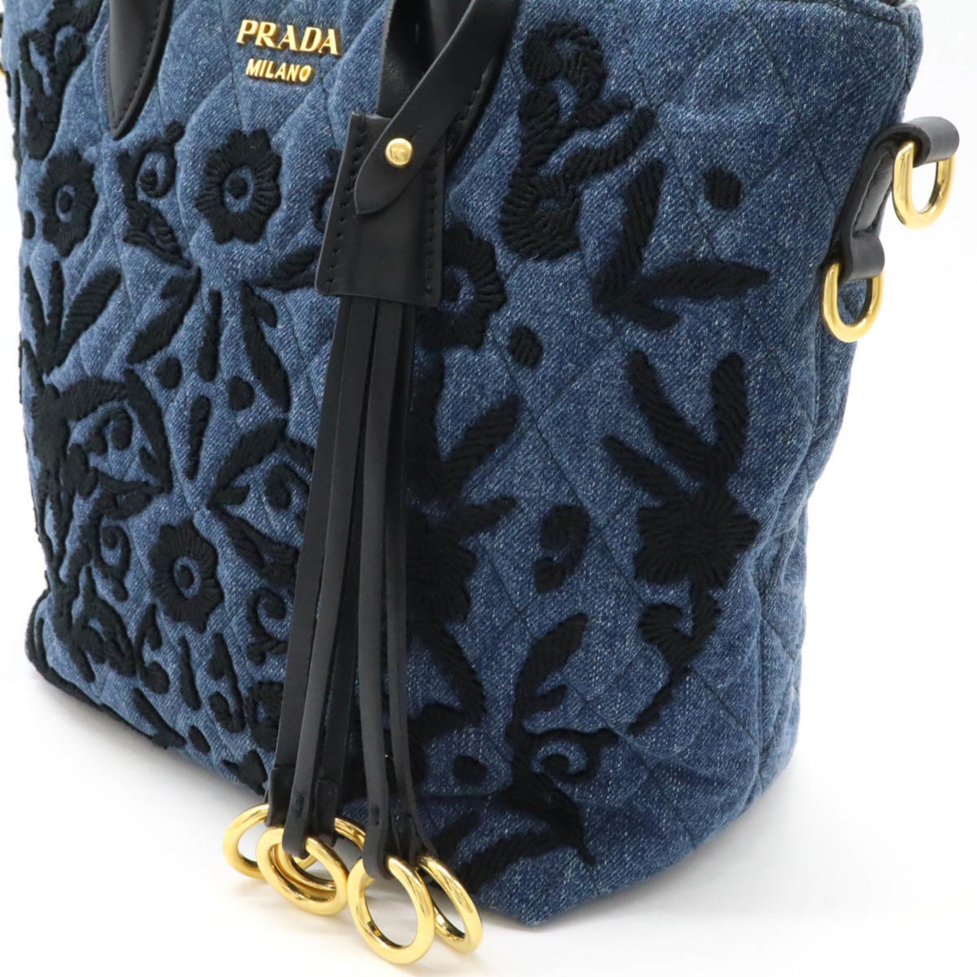 Prada Prada Corsaire Handbag Shoulder Bag Embroidery Quilted Denim Leather Bleu Blue Purchased At