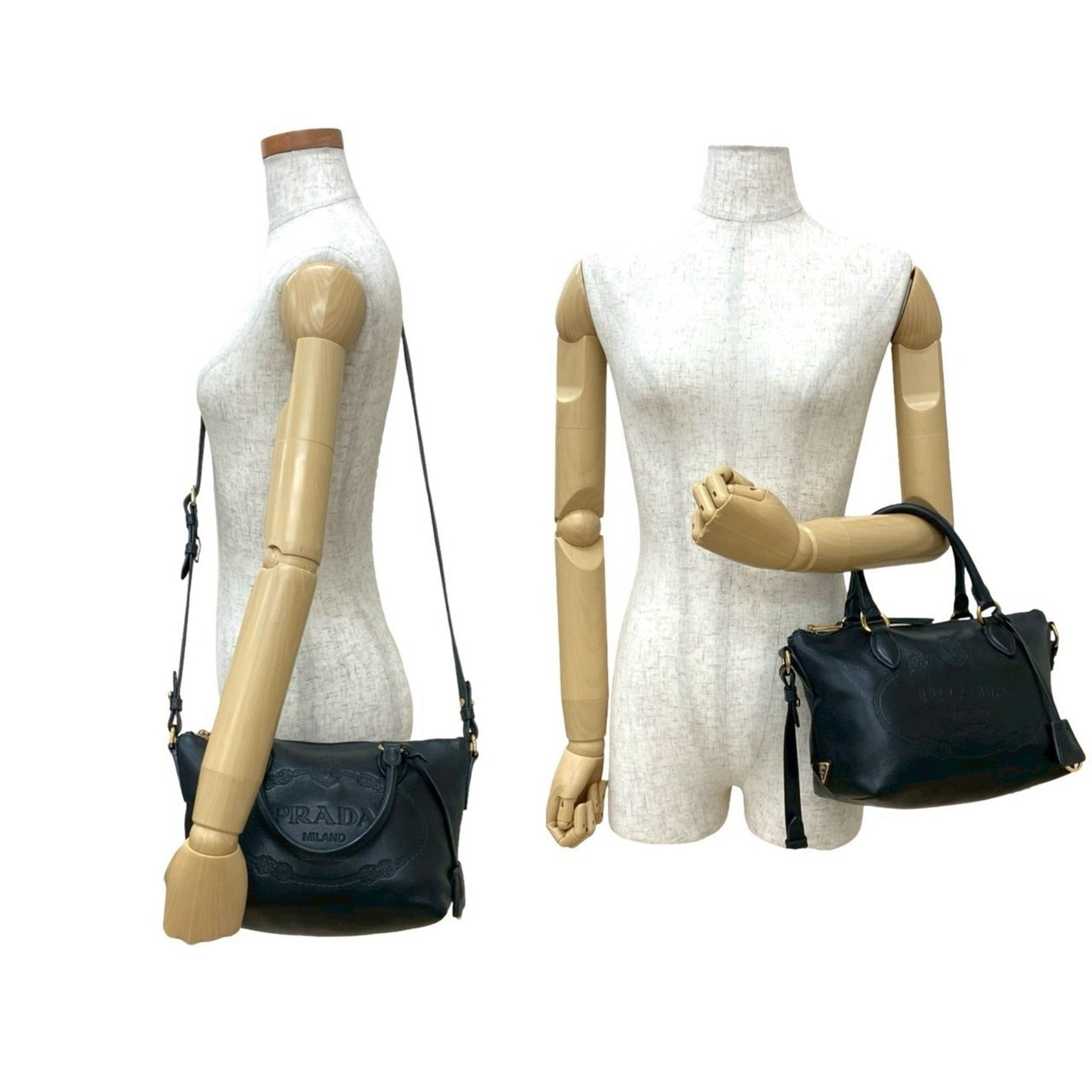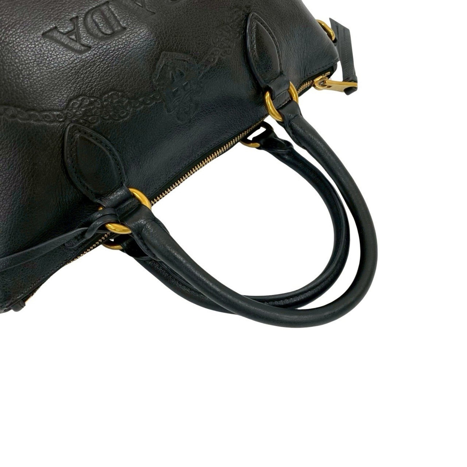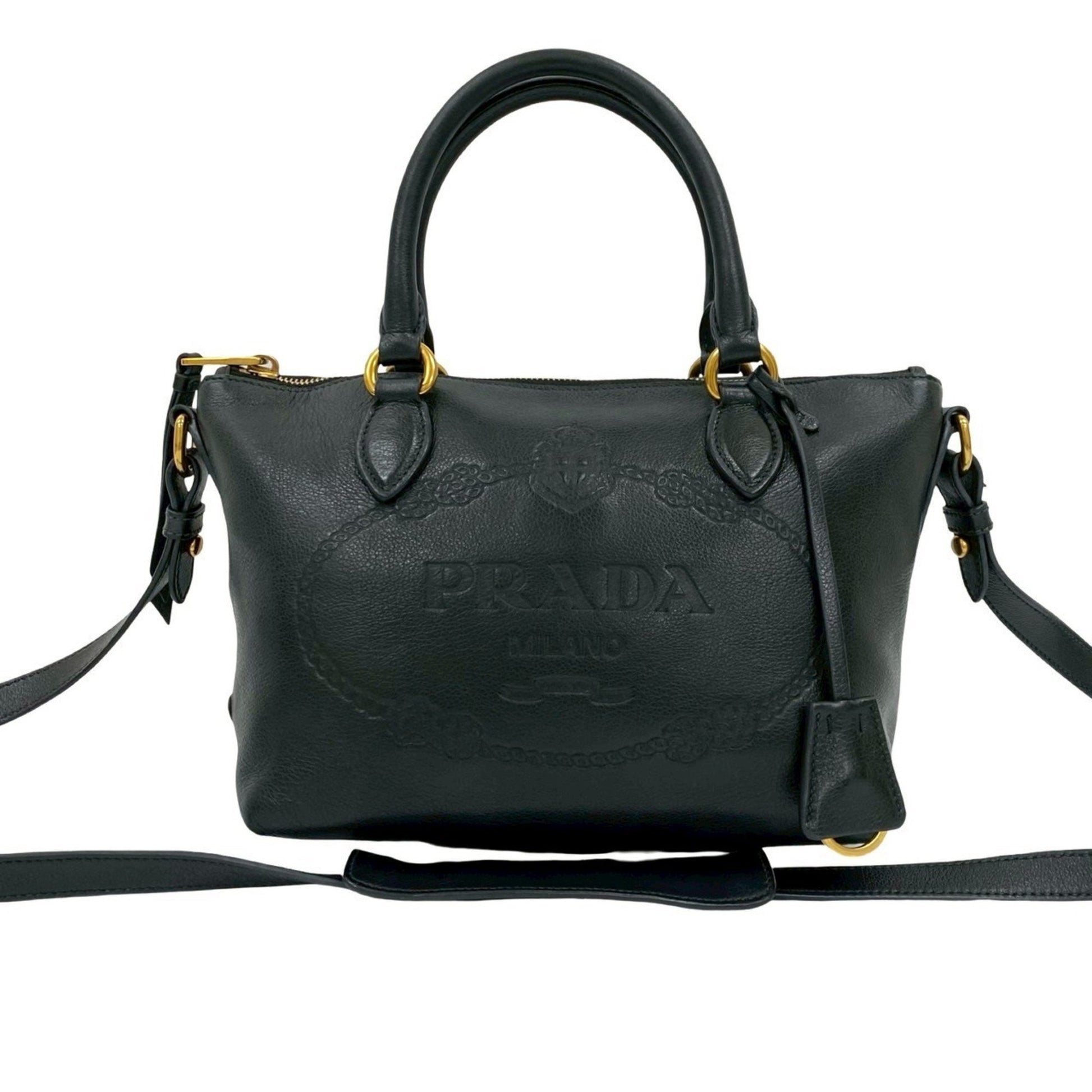 Prada Prada Embossed Triangle Logo Hardware Leather 2-Way Handbag Mini Tote Bag Shoulder Black 58562