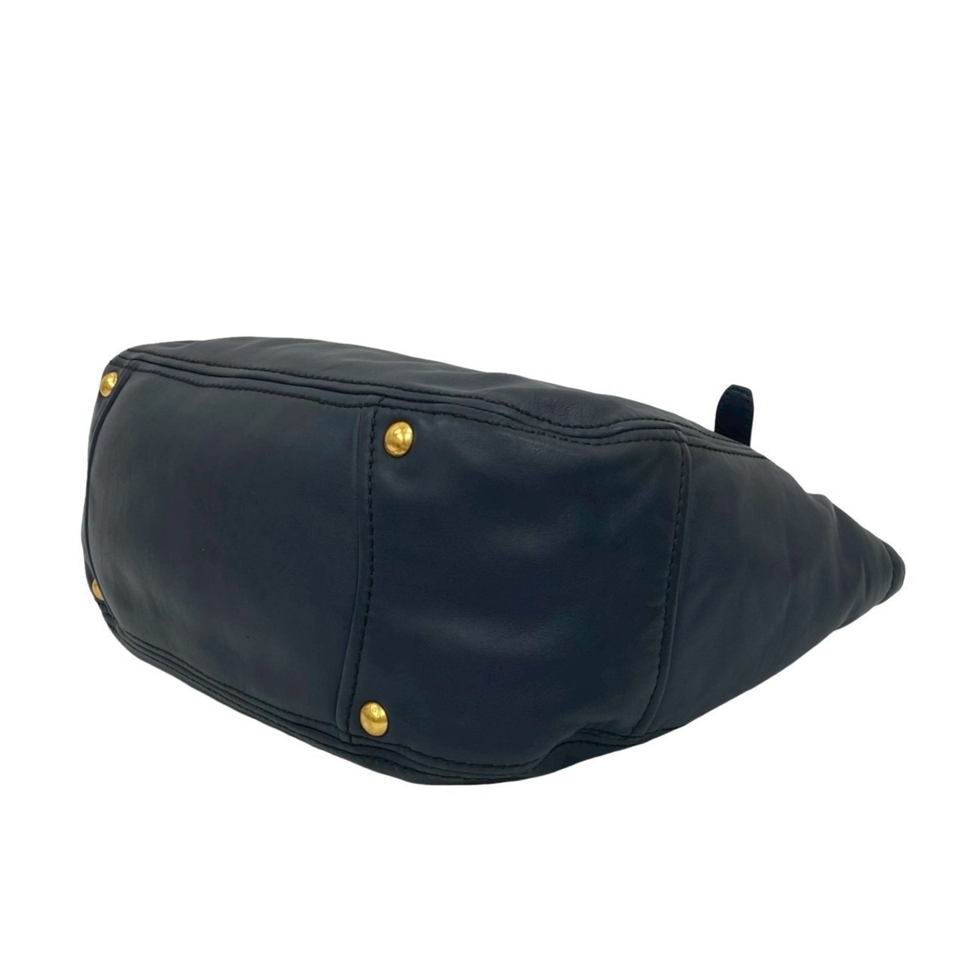 Prada Prada Gold Logo Hardware Leather Genuine Tote Bag Handbag Semi-Shoulder Navy Blue 33-10