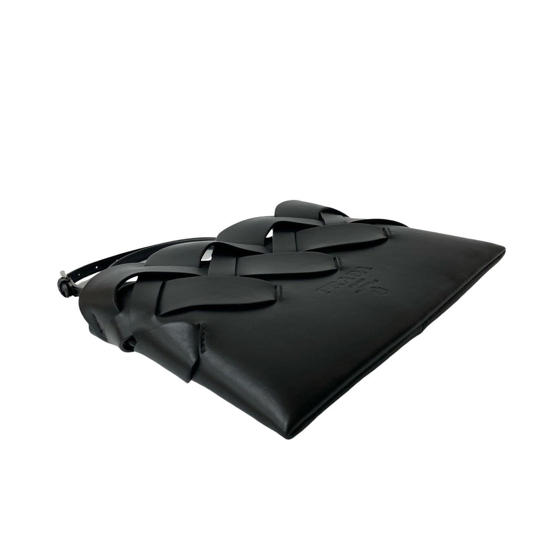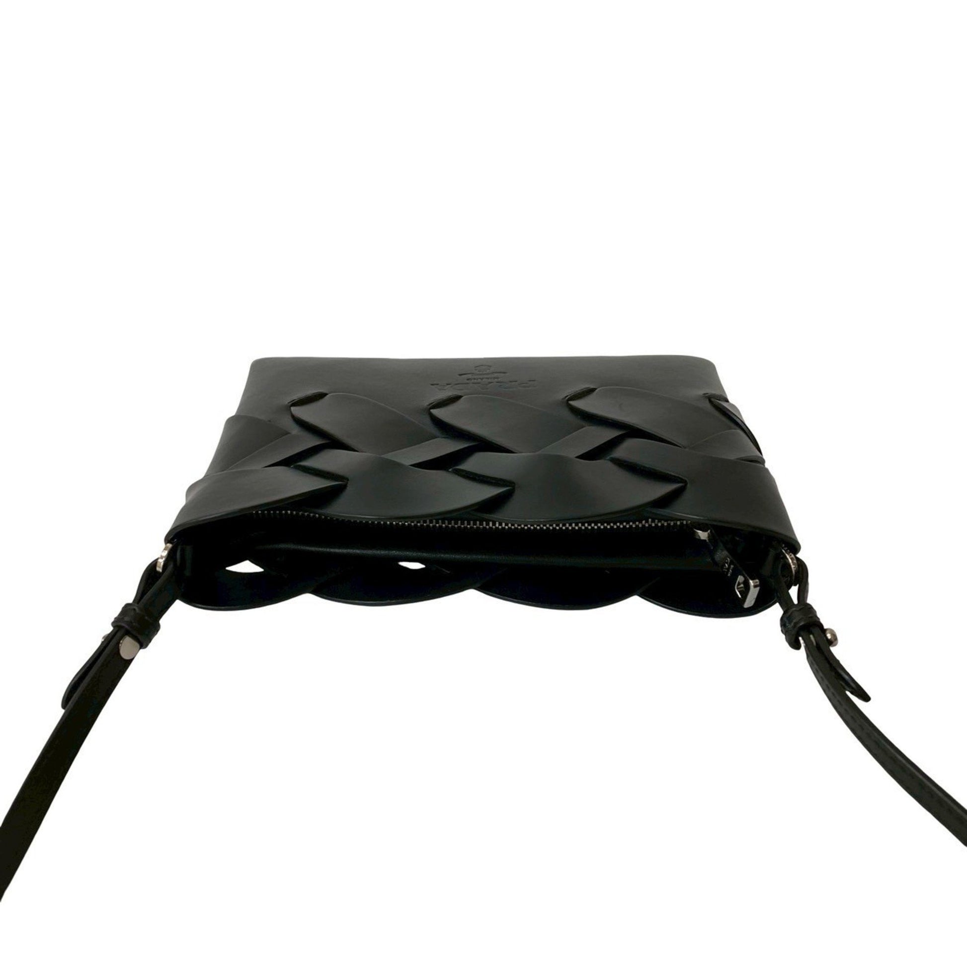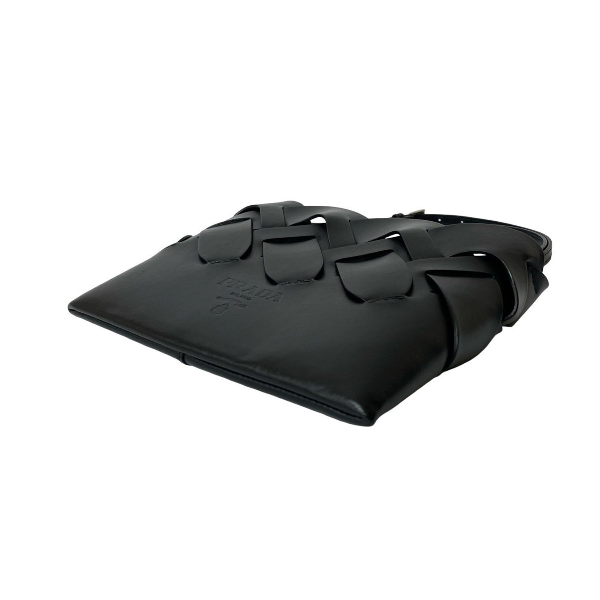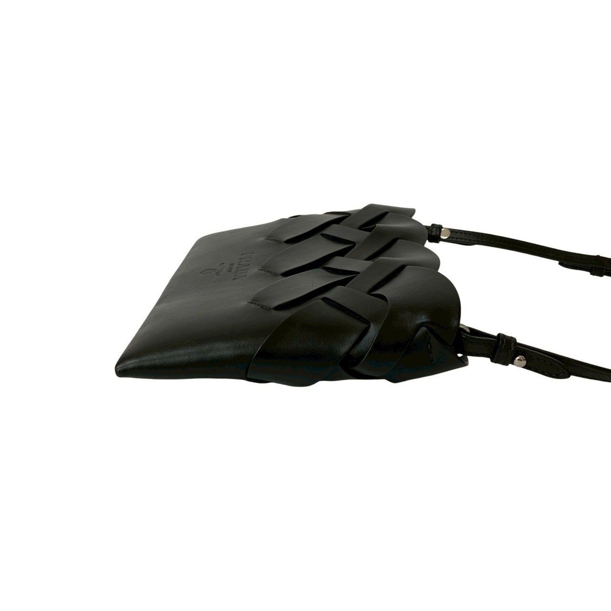 Prada Prada Logo Vitello Intrecciato Leather Shoulder Bag/Pochette/Sacoche In Black 28364