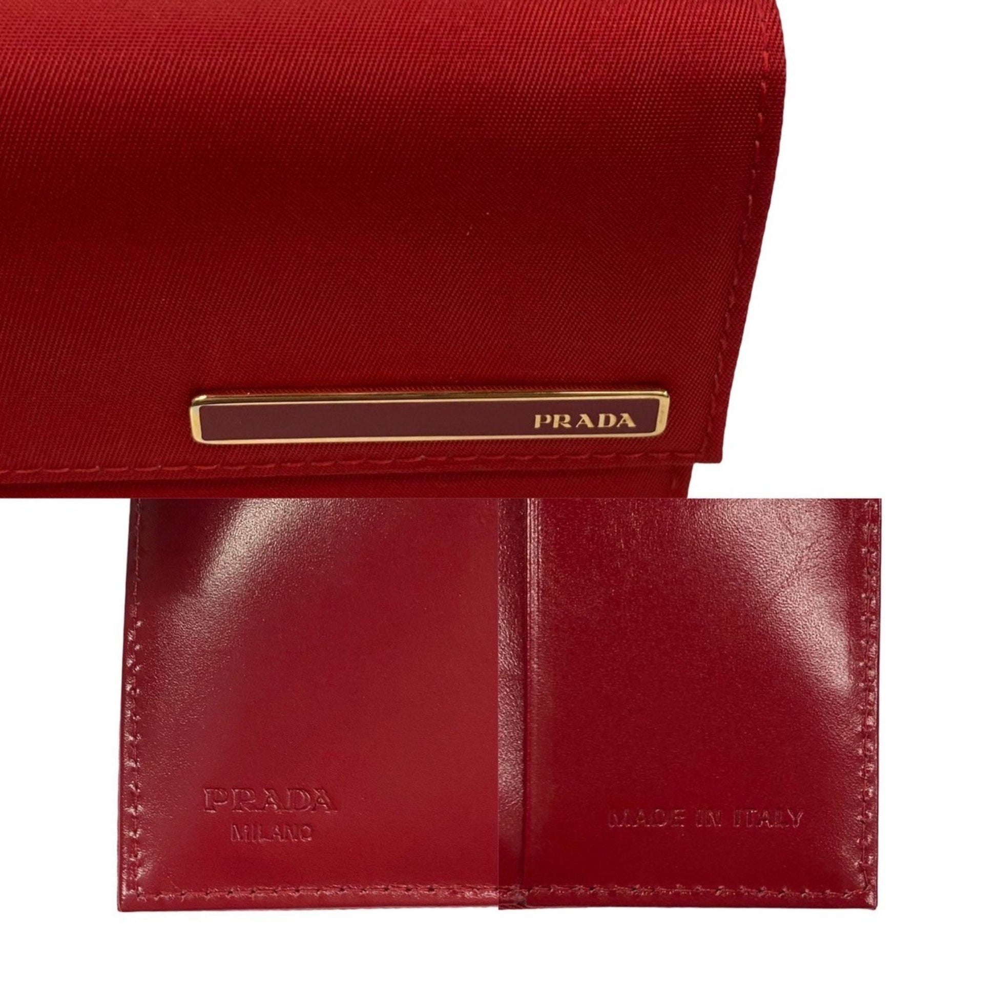 Prada Prada Metal Fittings Nylon Leather Bi-Fold Wallet Compact Red 13822