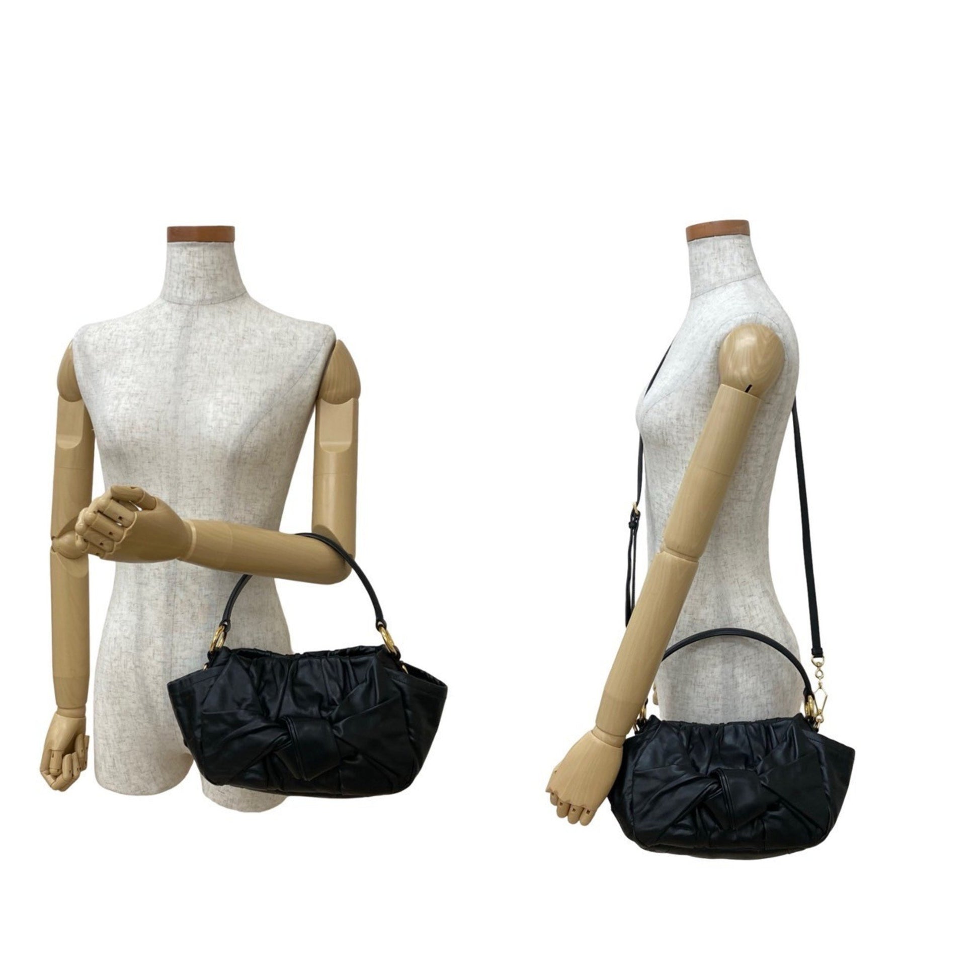 Prada Prada Triangle Logo Metal Ribbon Motif Leather 2-Way Handbag/One-Shoulder Bag Black 59512