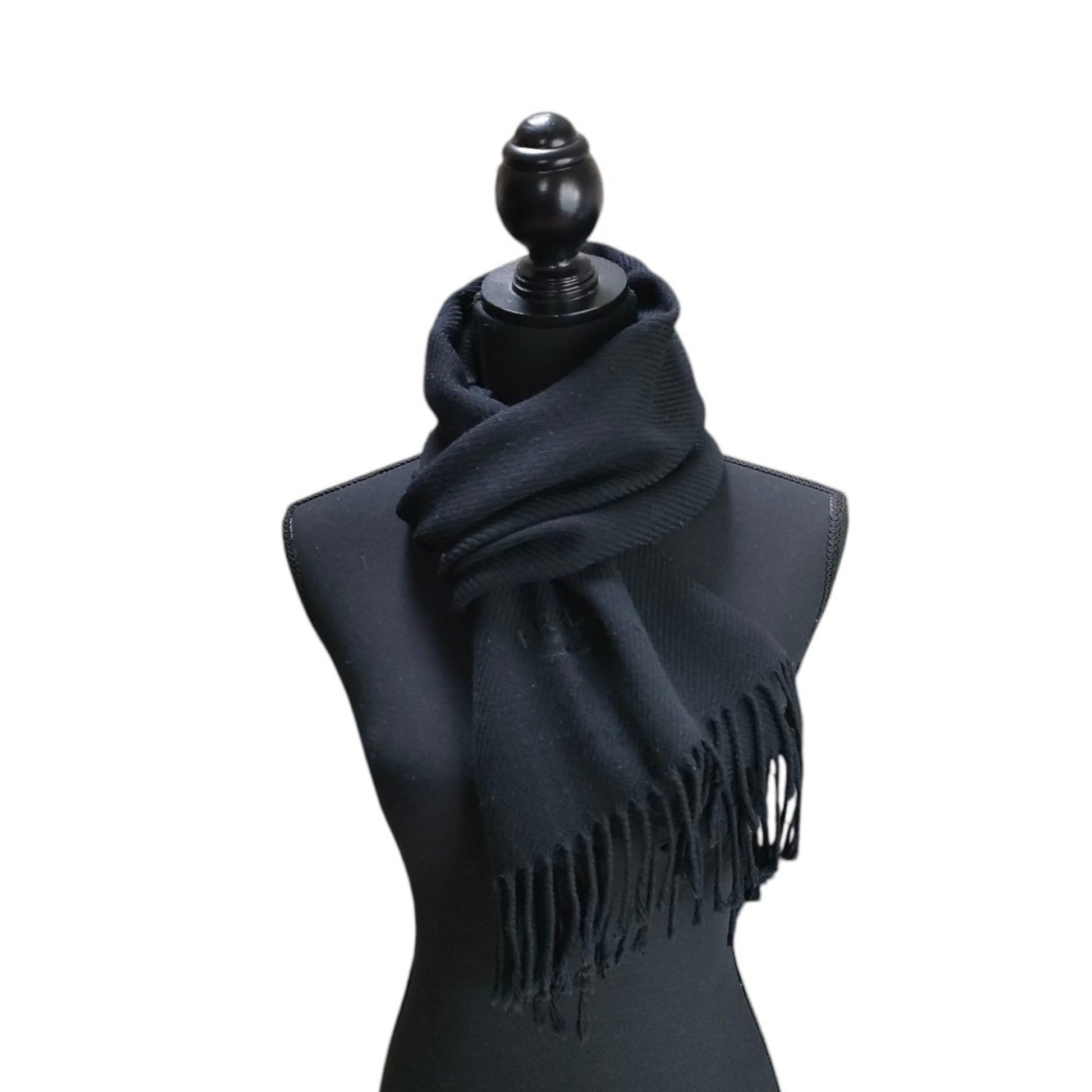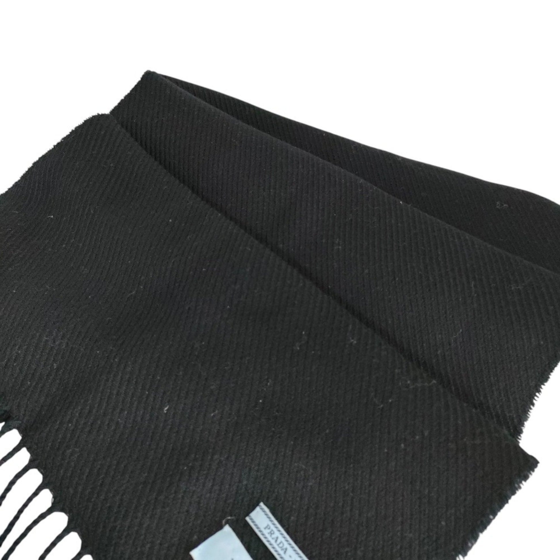 Prada Prada Wool Logo Embroidered Fringe Scarf/Stole In Black
