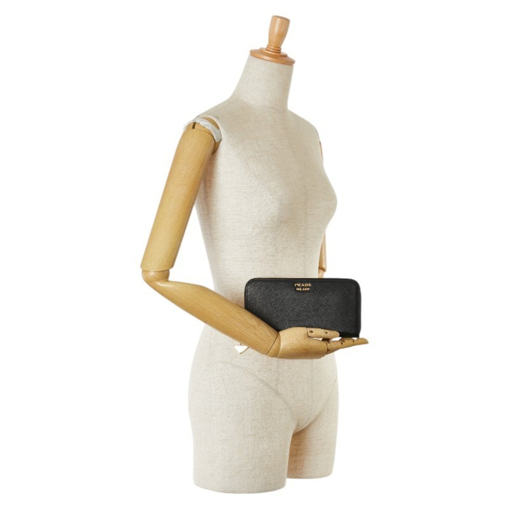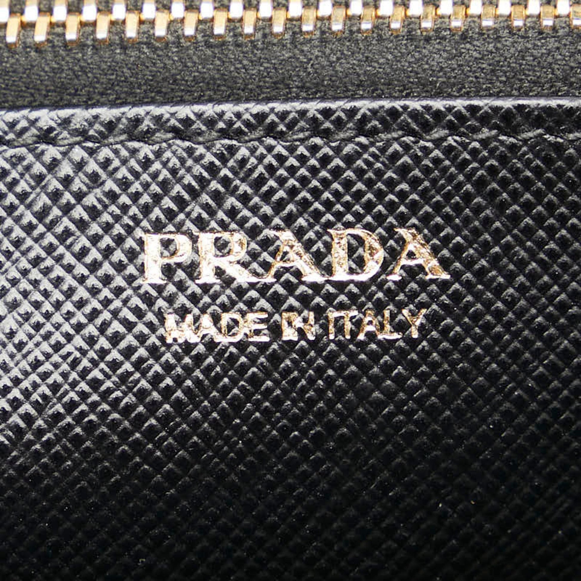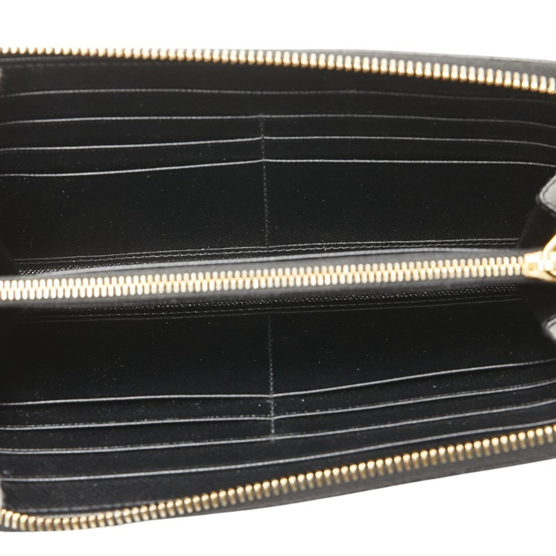 Prada Round Long Wallet 1Ml506 Black Leather