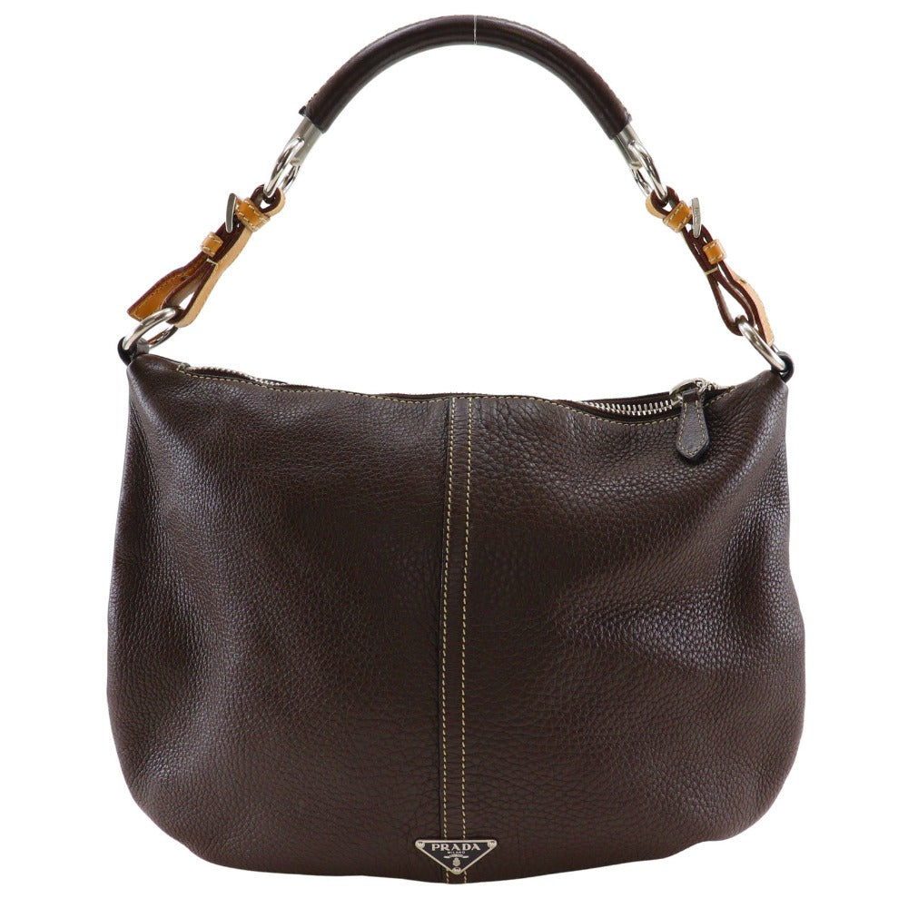 Prada Shoulder Bag Calfskin Brown One Belt Women
